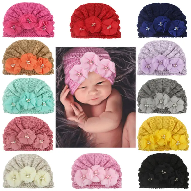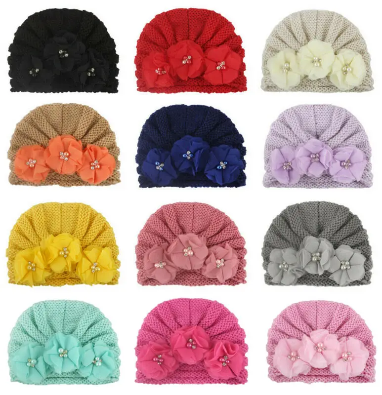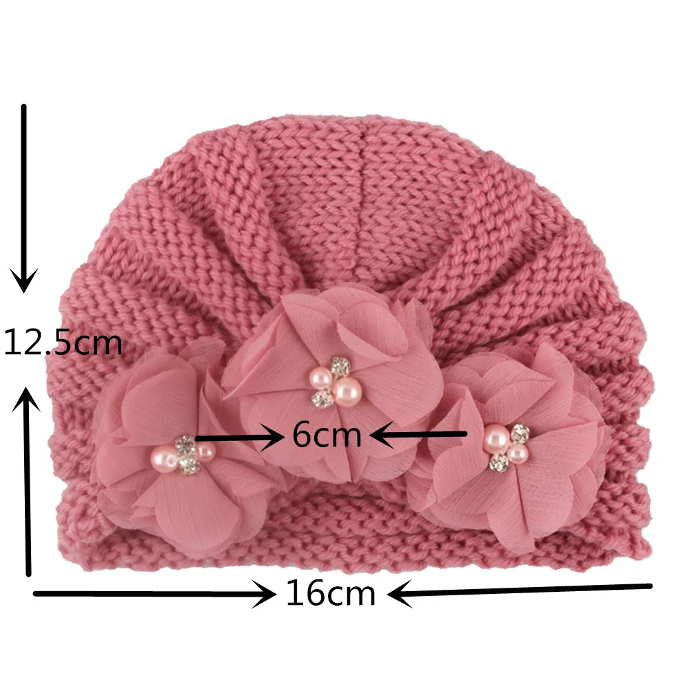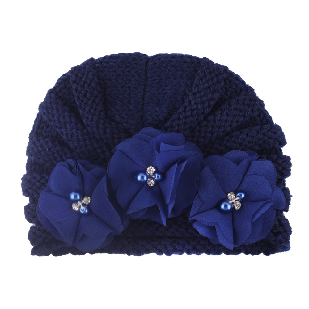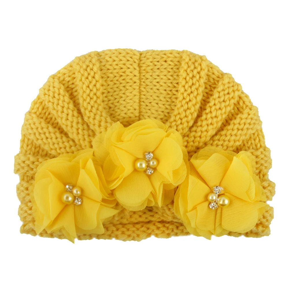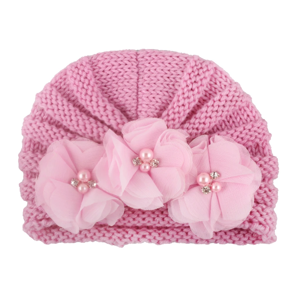 2020, Детские аксессуары, одежда, Зимняя Шапка-бини для маленьких девочек и мальчиков, теплая шапка с цветами, вязаная крючком шапка с жемчугом, тюрбан