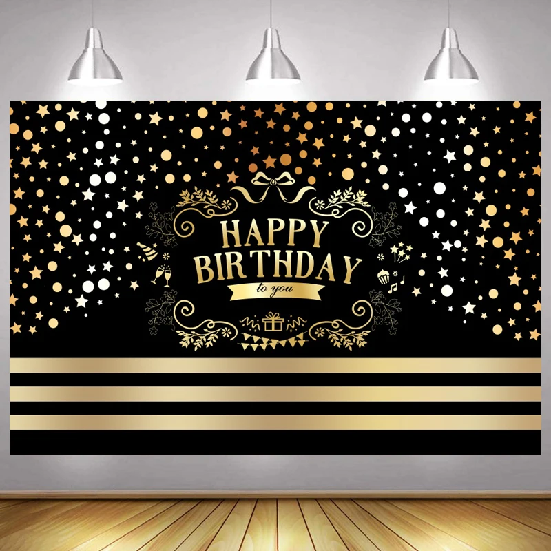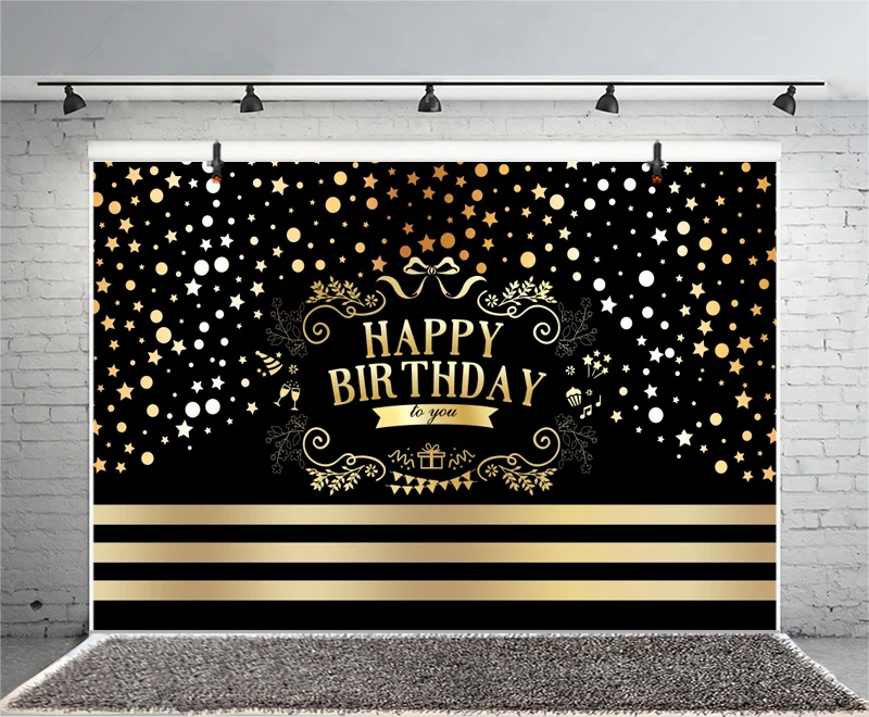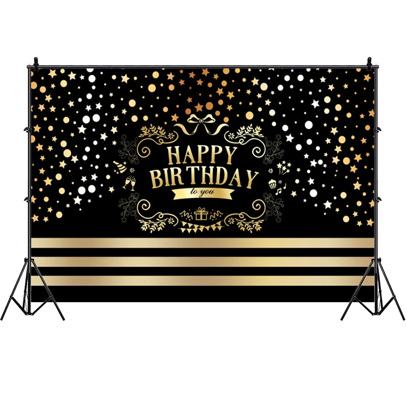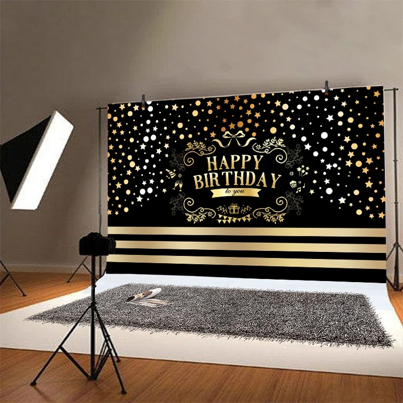 Счастливый День рождения фон с полосками из пайеток черного и золотого цвета с блестками для взрослых фон для фотосъемки с изображением сияющих плакат в горошек для фотосъемки