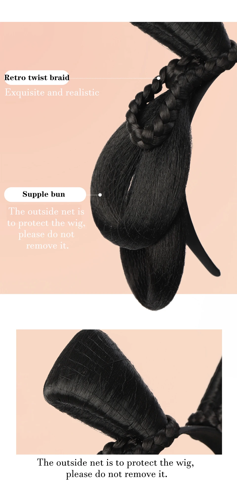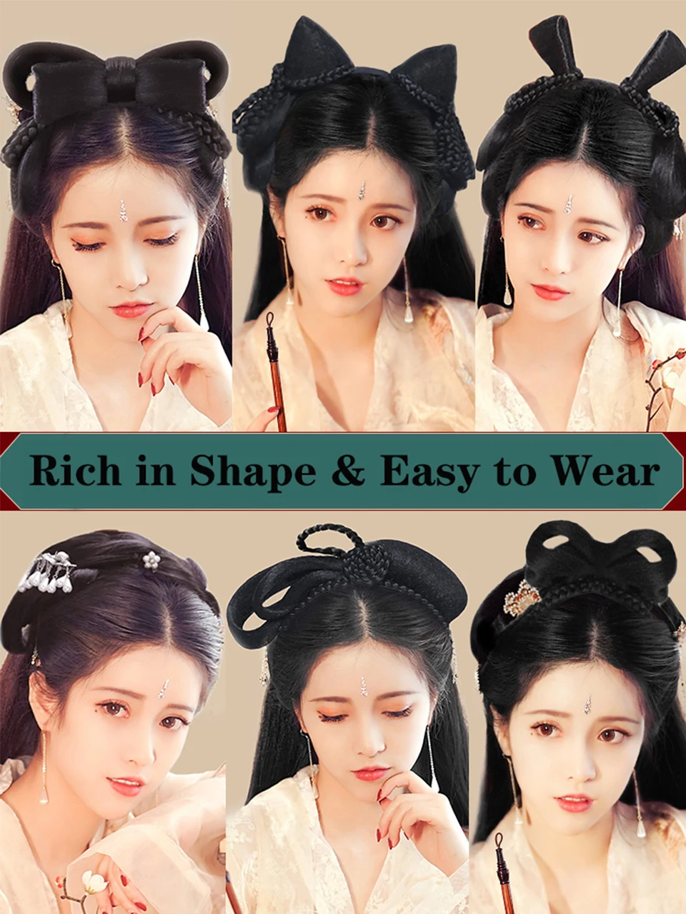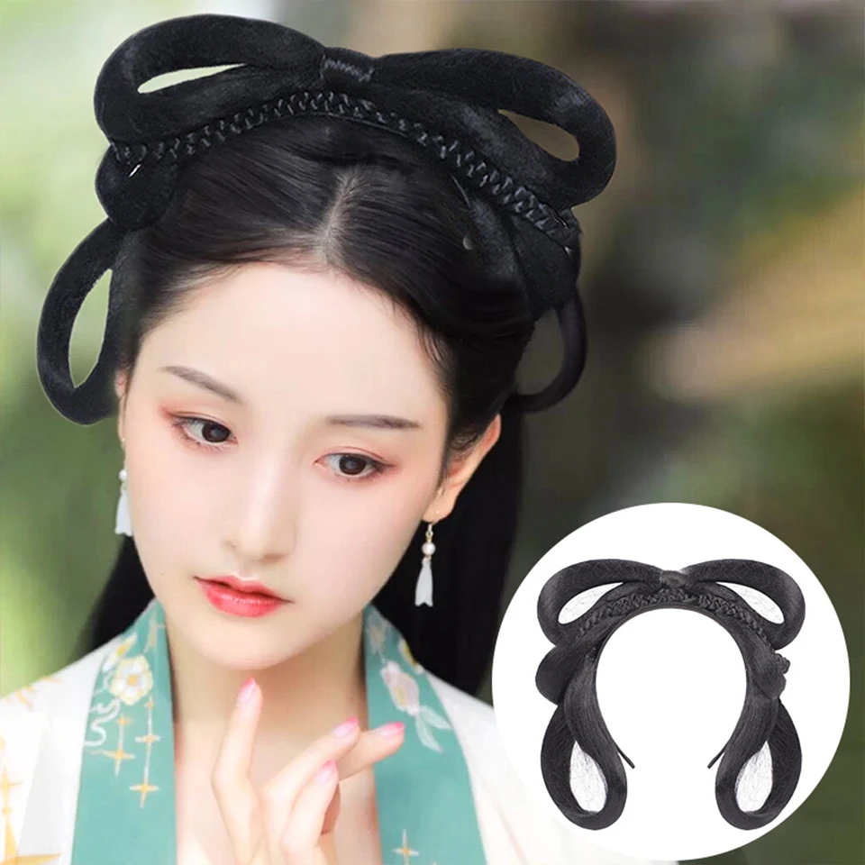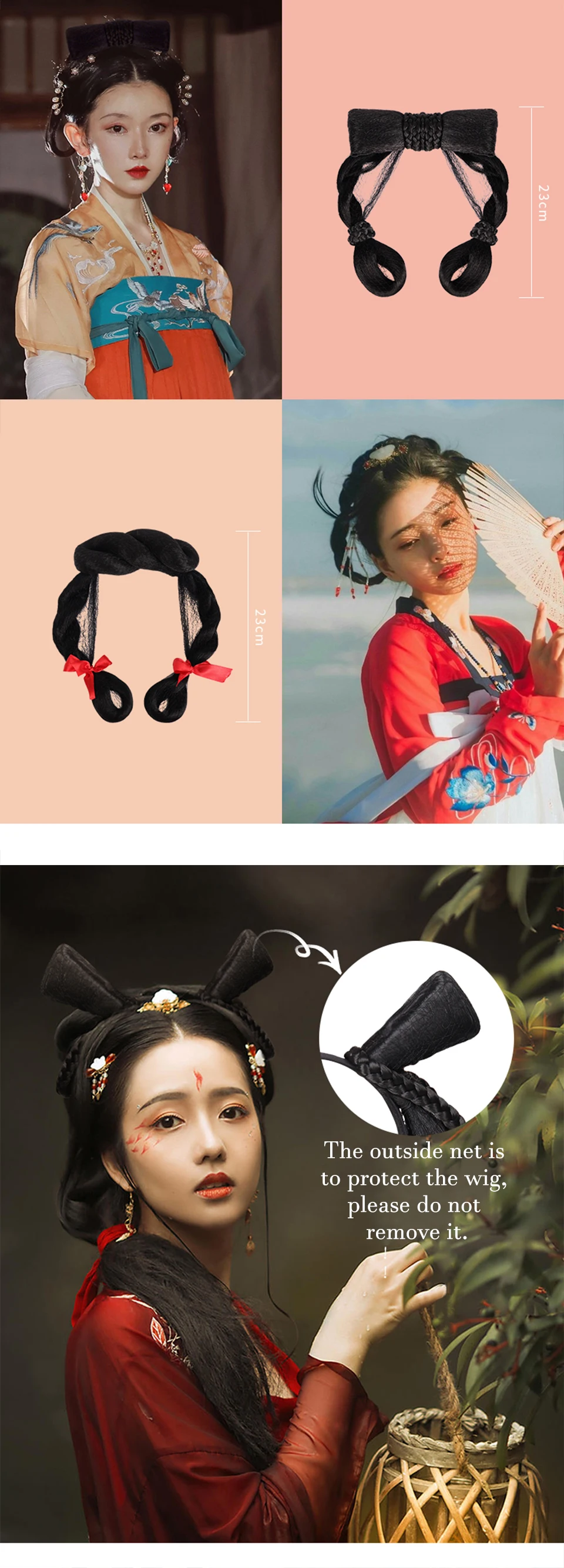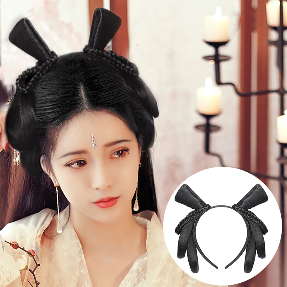 Традиционный китайский шиньон BUQI в стиле ретро, синтетический ханьфу, косплей парик, Черные искусственные волосы, волшебная резинка для волос, принцессы