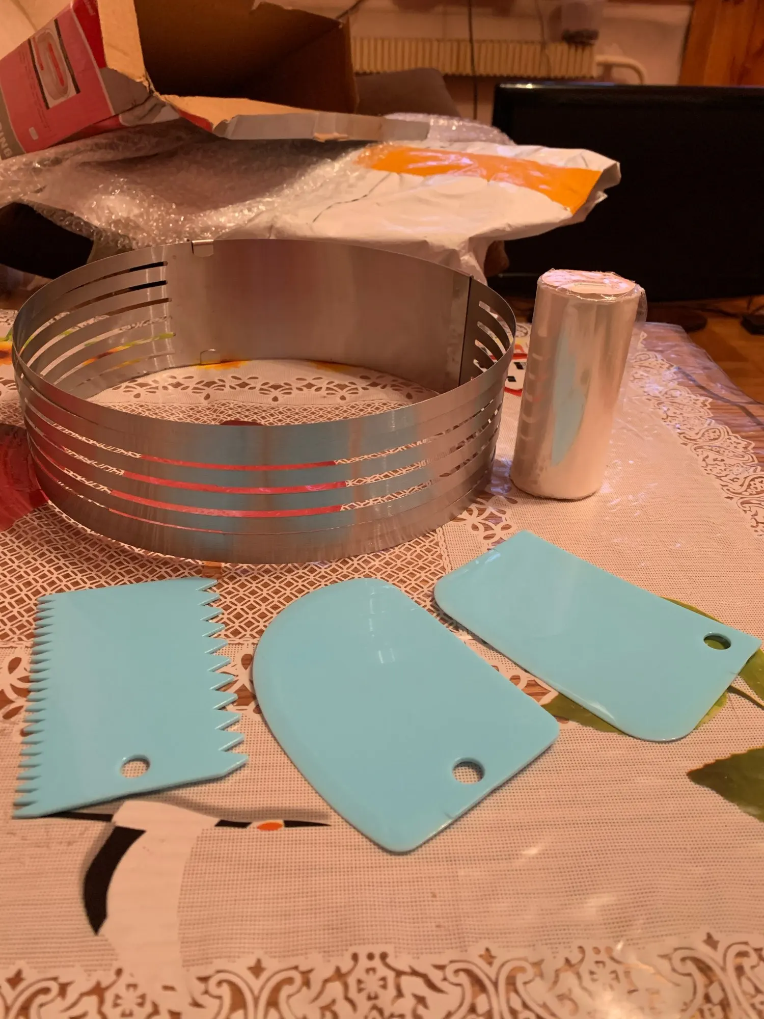 За 12 дней со дня заказа. Заказывали форму без разрезов 16-30 см и мелочёвку в комплекте. По качеству нормально, жену всё устраивает))