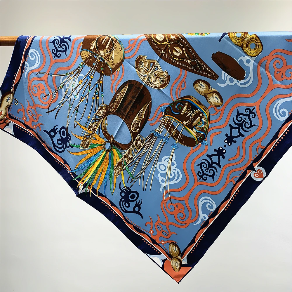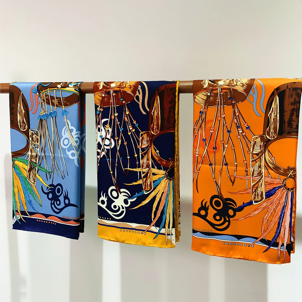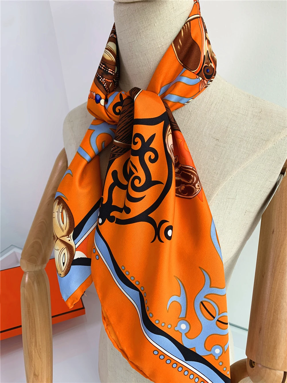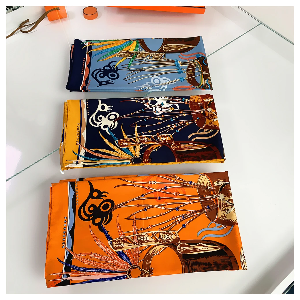 Дизайнерский брендовый роскошный женский Зимний Маска для ручной завивки с узором руны женский большой квадратный шарф солнцезащитное полотенце шаль шарф для шеи