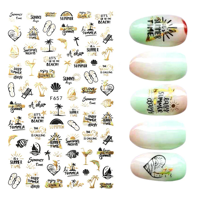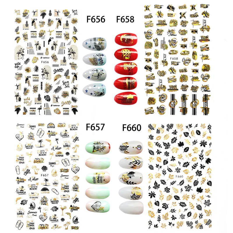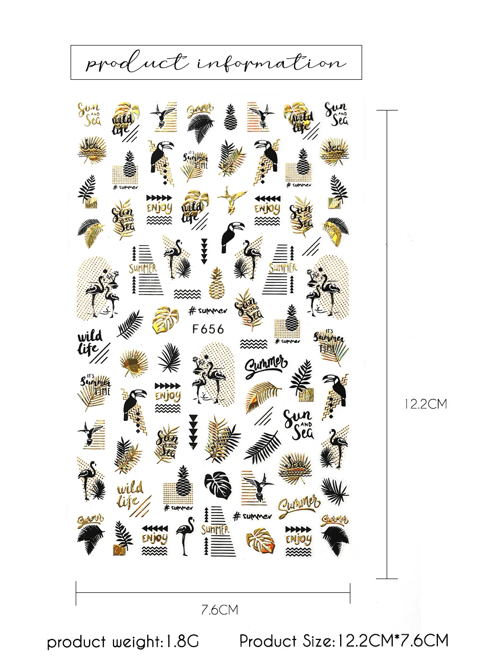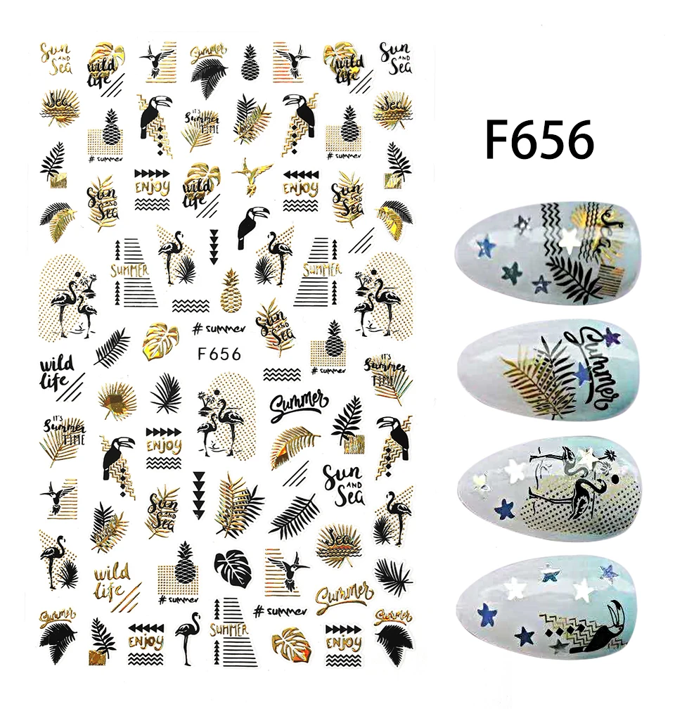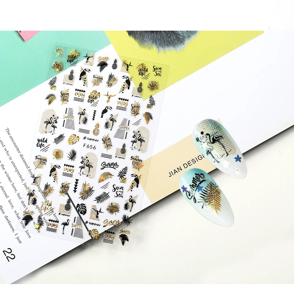 1 шт. 3D наклейка для ногтей лазерный золотой лист Кокосовое Дерево...