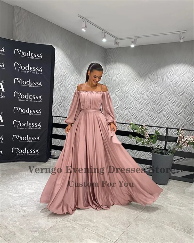 Женское вечернее платье-спагетти Verngo, розовое пыльно-розовое платье с пышными длинными рукавами, с поясом, длиной до пола, для выпускного вечера, с вырезом лодочкой, шифоновое
