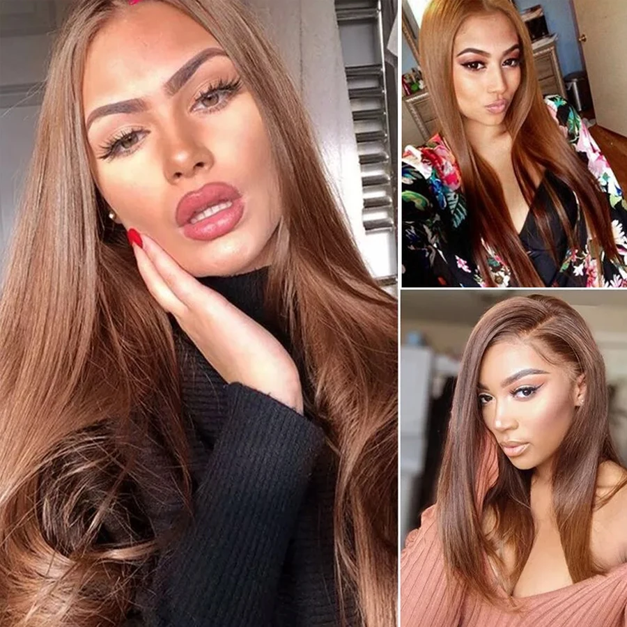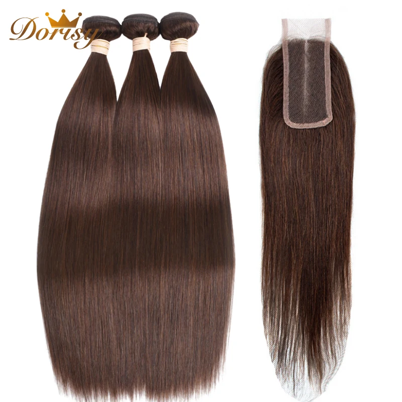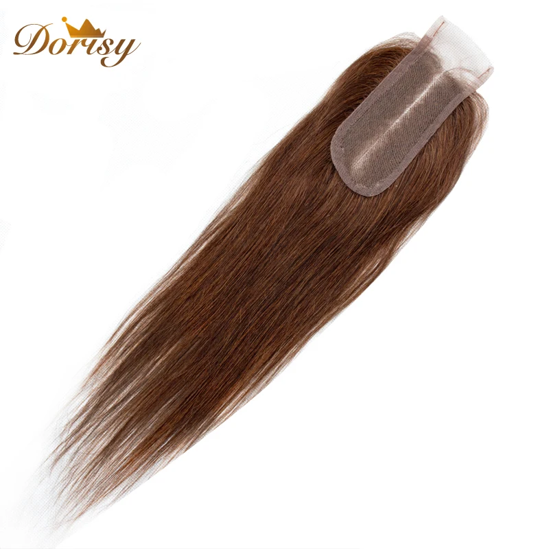 Пряди светильник-коричневых волос с застежкой, перуанские пряди волос с кружевной застежкой 2*4, прямые человеческие волосы Реми для наращивания