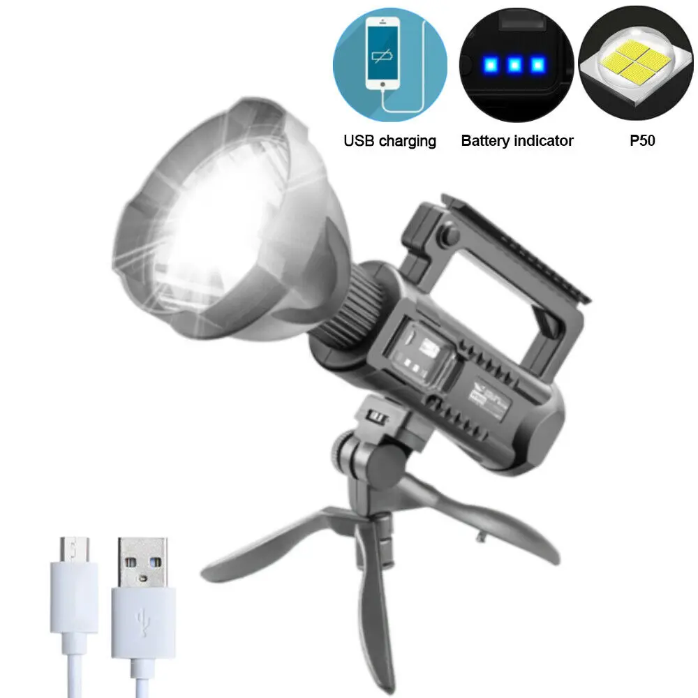 Мощный светодиодный портативный фонарик XHP70.2, перезаряжаемый прожектор с USB, водонепроницаемый прожектор с базовым фонарем для рыбалки