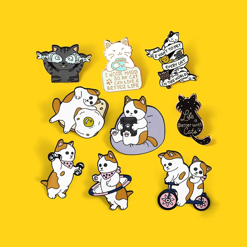 Эмалированные заколки в виде животных, кошек, Живой берер с кошками, индивидуальная шпилька для лацкана одежды, Значки для влюбленных кошек, забавные украшения для детей