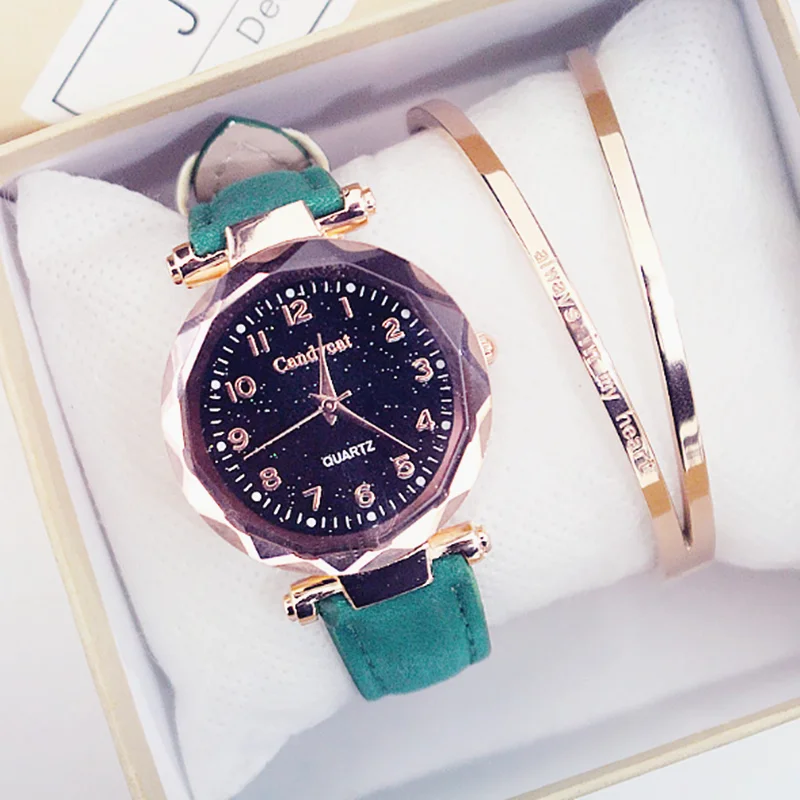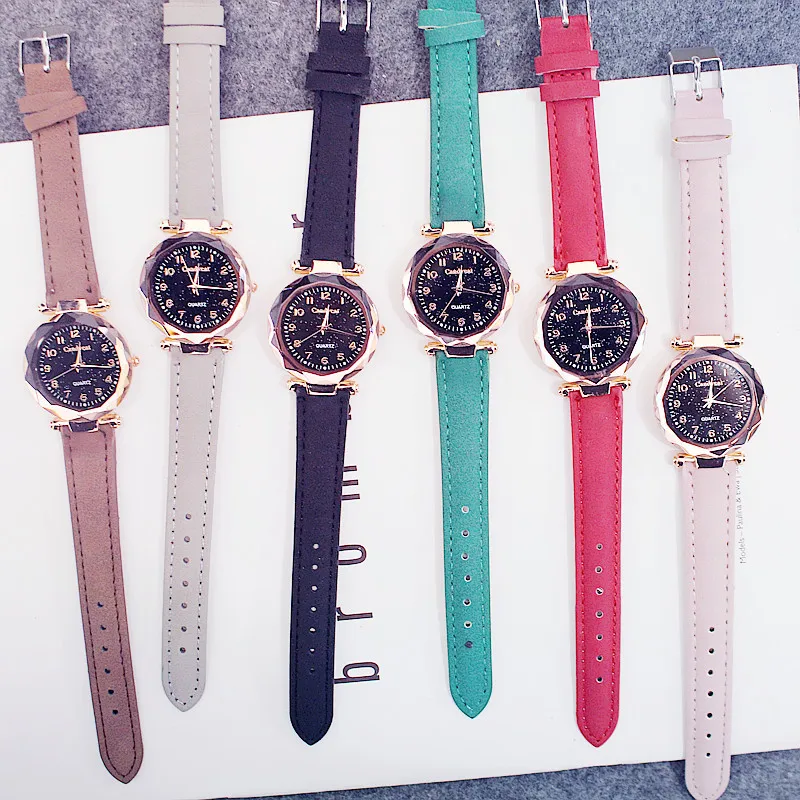 Часы женские, с магнитным звёздным небом, Круглые, со стразами, аналоговые кварцевые часы в стиле кэжуал, 1 шт.