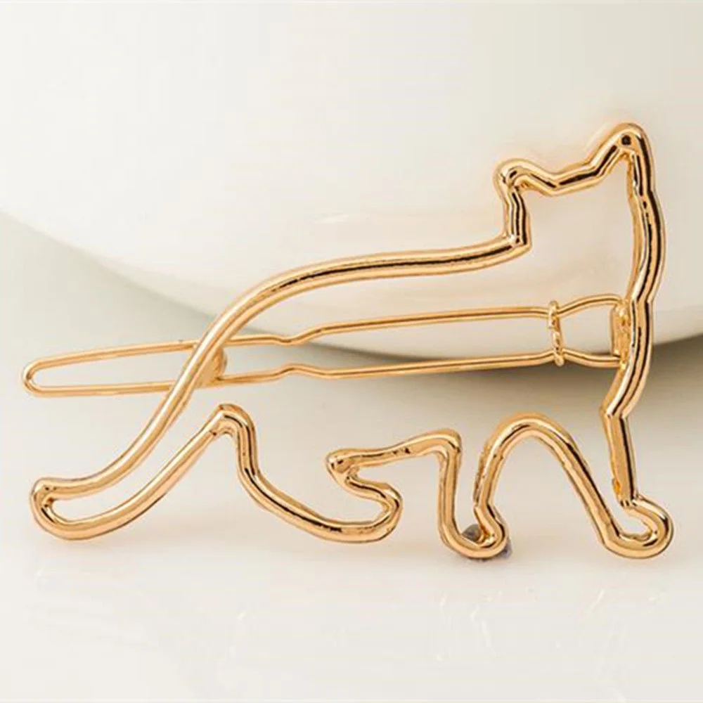 1 шт. Новая мода милый кот заколка для волос милый животное полый кот заколка для волос булавка для волос серебристый и золотой цвет женские аксессуары для волос для девочек