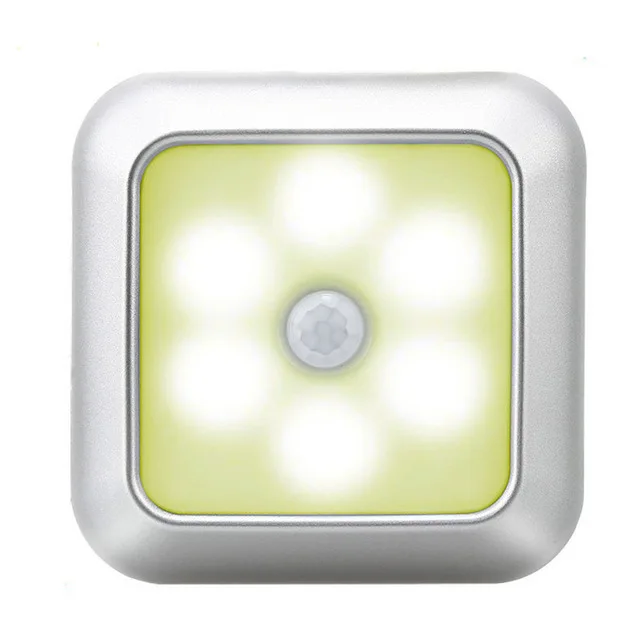 Ночсветильник с квадратным датчиком движения, 6 светодиосветодиодный, на батарейках, 2022