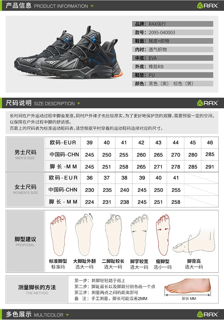 Мужская Нескользящая походная обувь RAX, водонепроницаемая женская ...