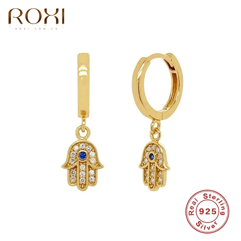 Серьги-кольца ROXI с синими камнями для женщин и девушек, необычные свадебные украшения на хрящевой основе из серебра 925 пробы, ювелирные изделия