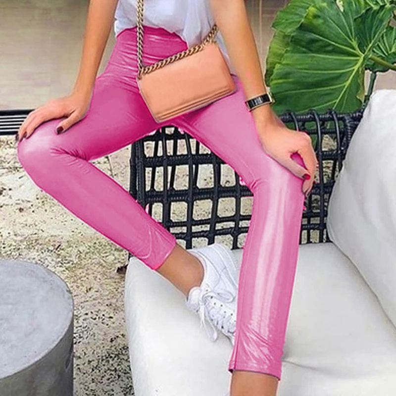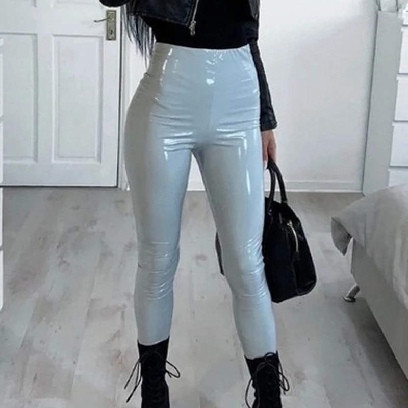 Feature82020 Womens Sexy Black High Waist Pants Slim Soft Strethcy Shiny Wet