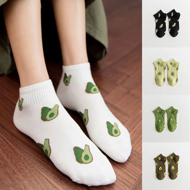Носки женские хлопковые короткие, с принтом авокадо, летние