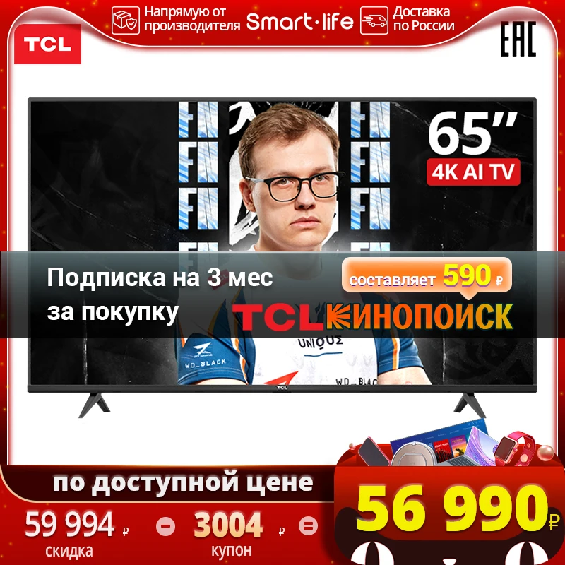 TCL 65P615 телевизор смарт TCL телевизор 65дюйма Smart TV 4k Led TV 4K UHD Android Television