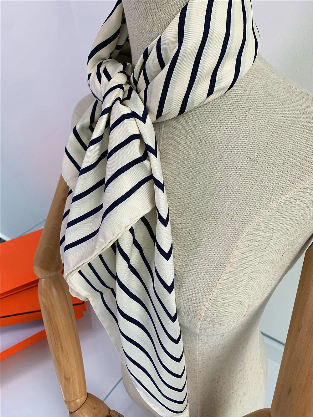 Женский квадратный шарф с геометрическими полосками, 90 см