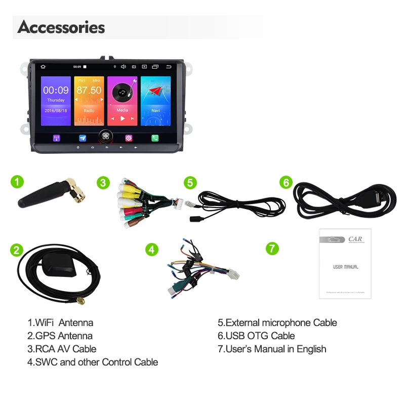 --- >>> Подходит для автомобилей VW/Skoda/Seat с 2005 года по настоящее время с RCD310,RCD315,RCD510,RNS510. Если ваш автомобиль 2016 + Rapid,2015 + Tiguan и другие новые модели после 2016 года, вам может понадобиться Новый MQB VW Quadlock и CANBUS. Пожалуйста, сообщите нам, мы поможем вам проверить его и отправим вам правильный кабель Quadlock и CANBUS.