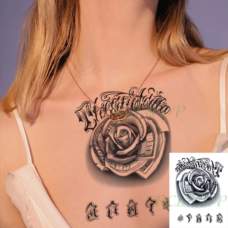 Водонепроницаемая Временная тату-наклейка цветок Роза письмо поддел...