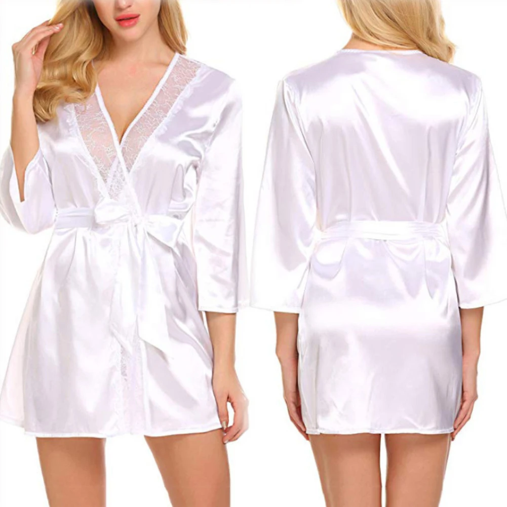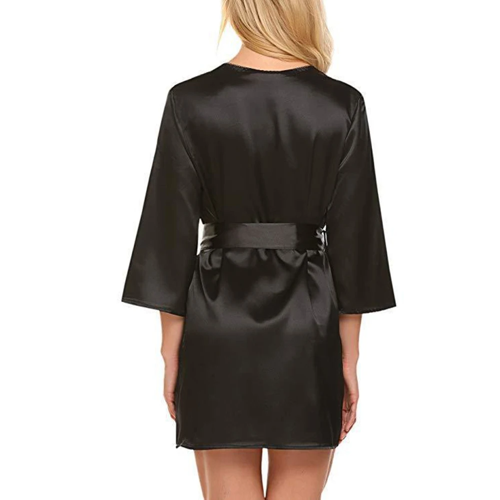 Женский сплошной цвет сексуальный v-образный вырез 3/4 рукав кружевной ремень со строчкой свободная ночная рубашка