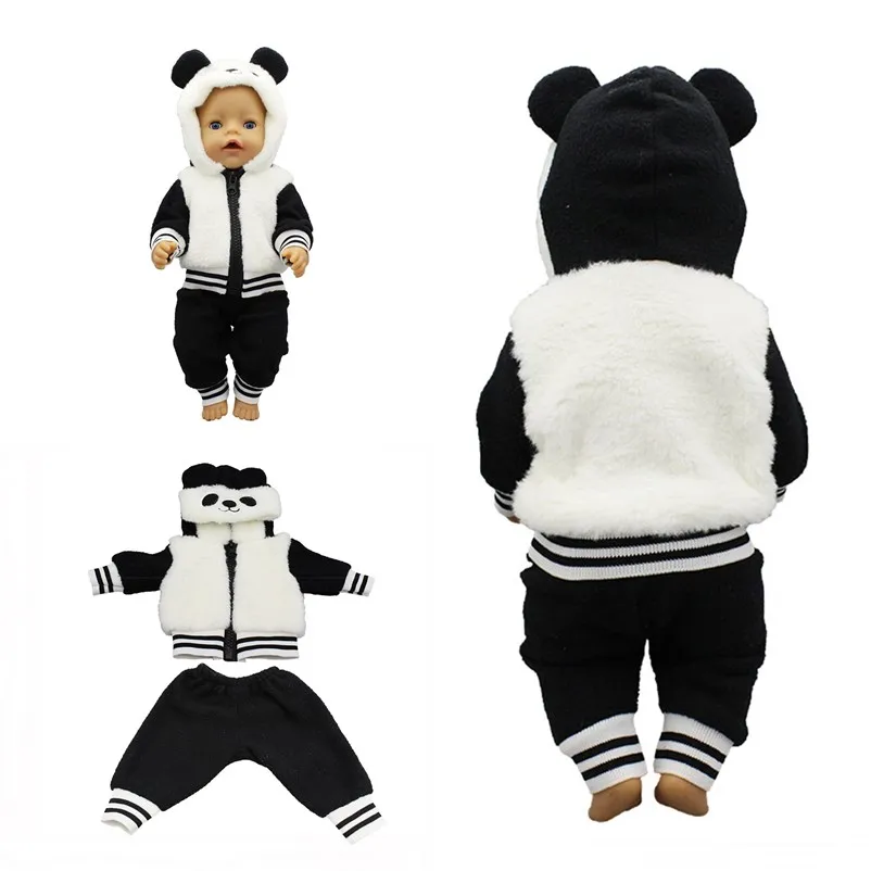 Born Новый подходящие младенцами 18 дюймов 43 см для ухода за ребенком для мам кукла аксессуары для одежды 3 предмета, черно-белая панда костюм для малышей на день рождения, фестиваль, подарок