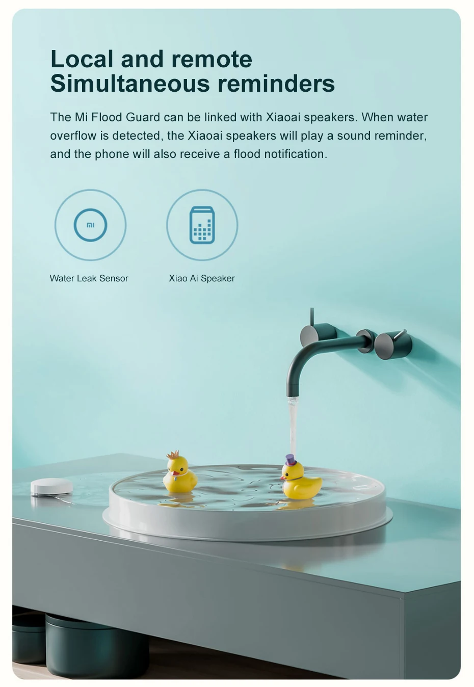 Датчик утечки воды Xiaomi Mi, водонепроницаемый сенсор для обнаружения протечек, работает с приложением Mijia