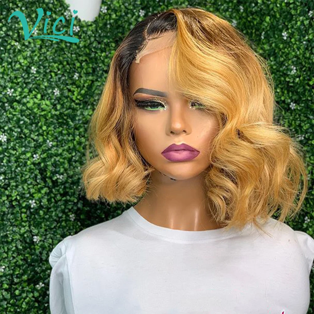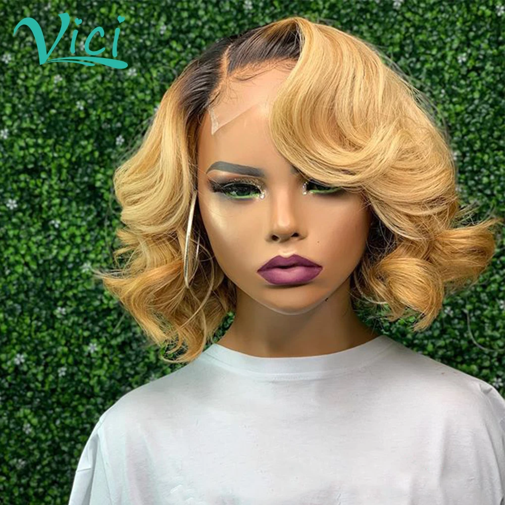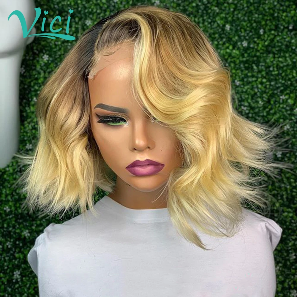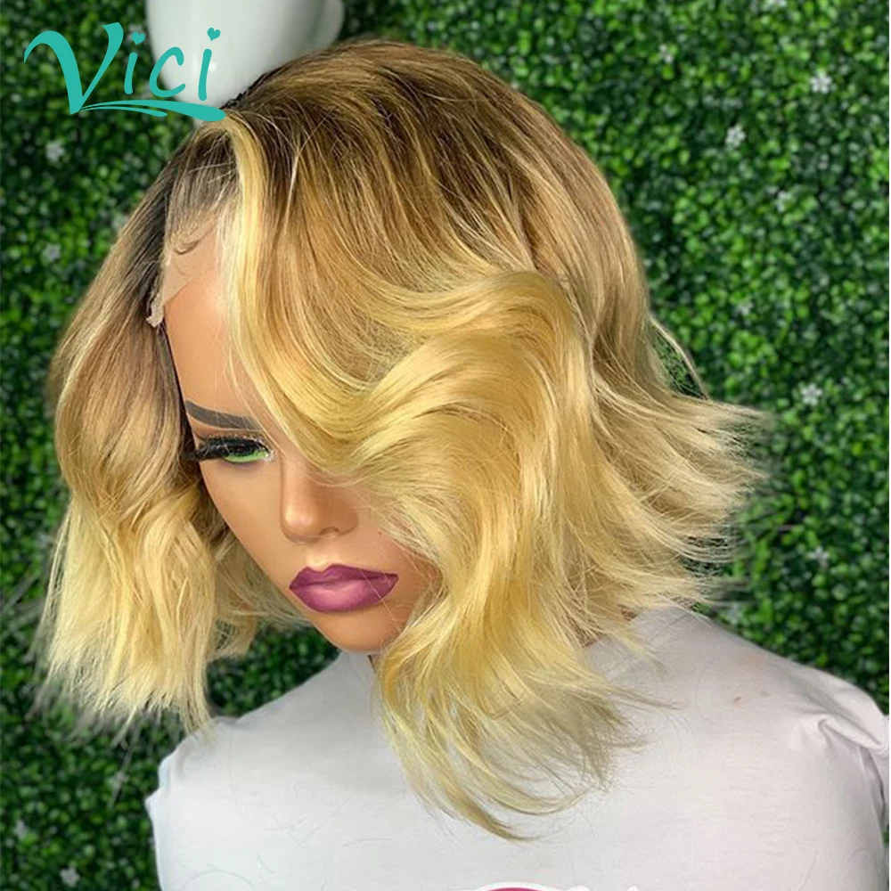 Парик из человеческих волос Омбре для чернокожих женщин, медово-светлые парики на шнуровке спереди, предварительно выщипанные Детские волосы, короткие волосы, парики из человеческих волос 150%