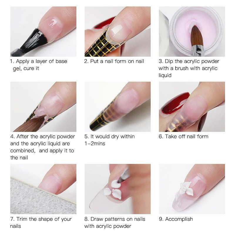 товар получила быстро,упаковано было хорошо,ни чего не рассыпалось))) акриловая пудра хорошо подходит для укрепления))