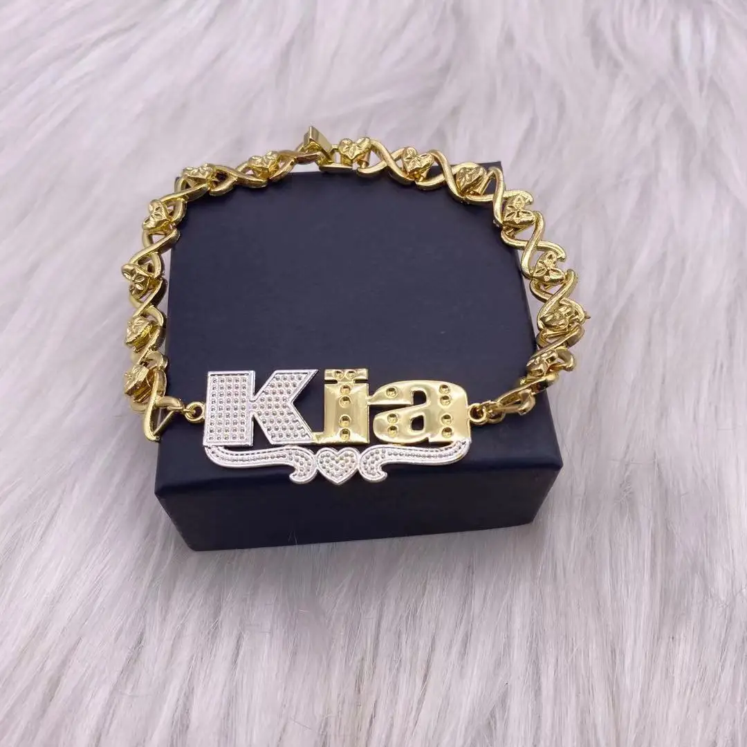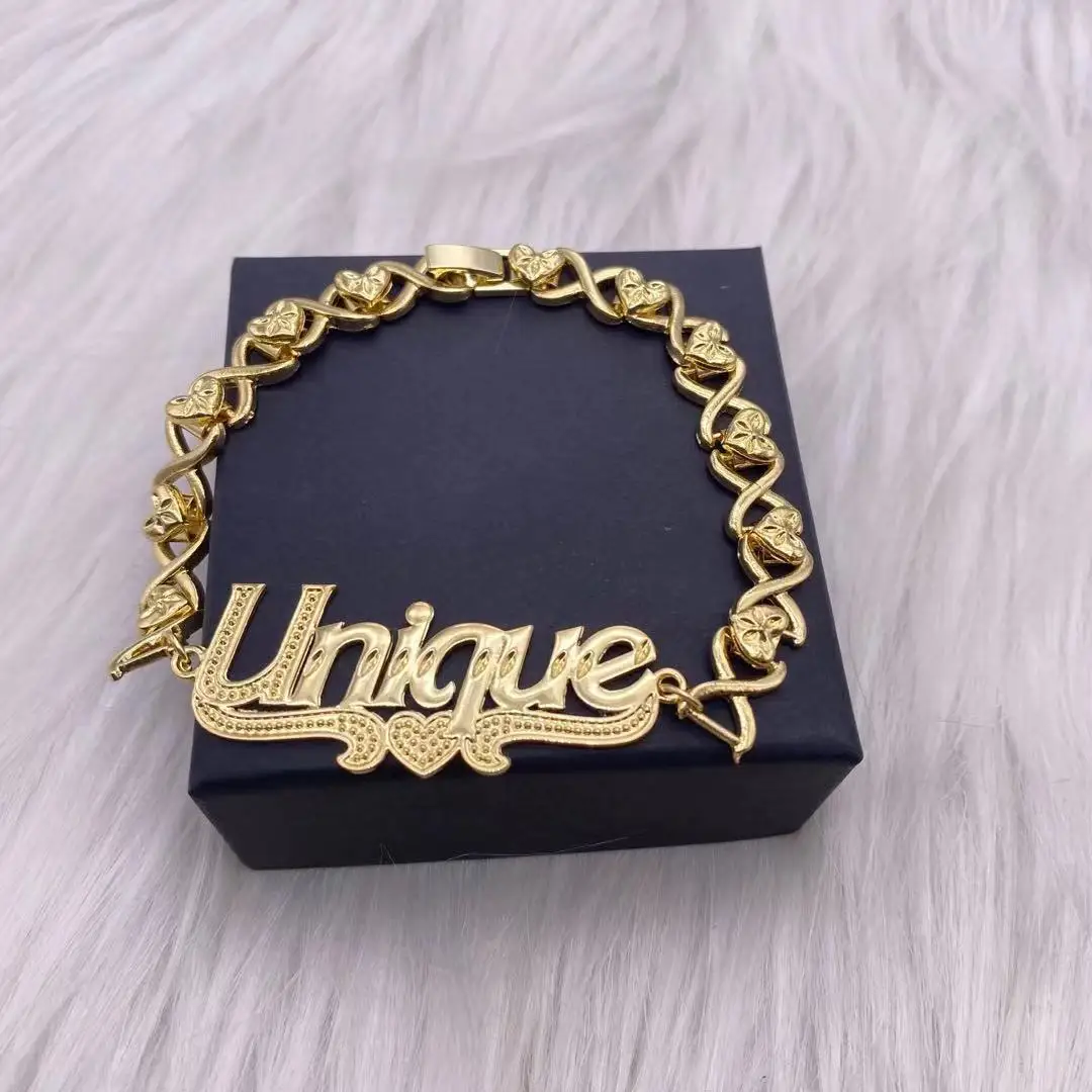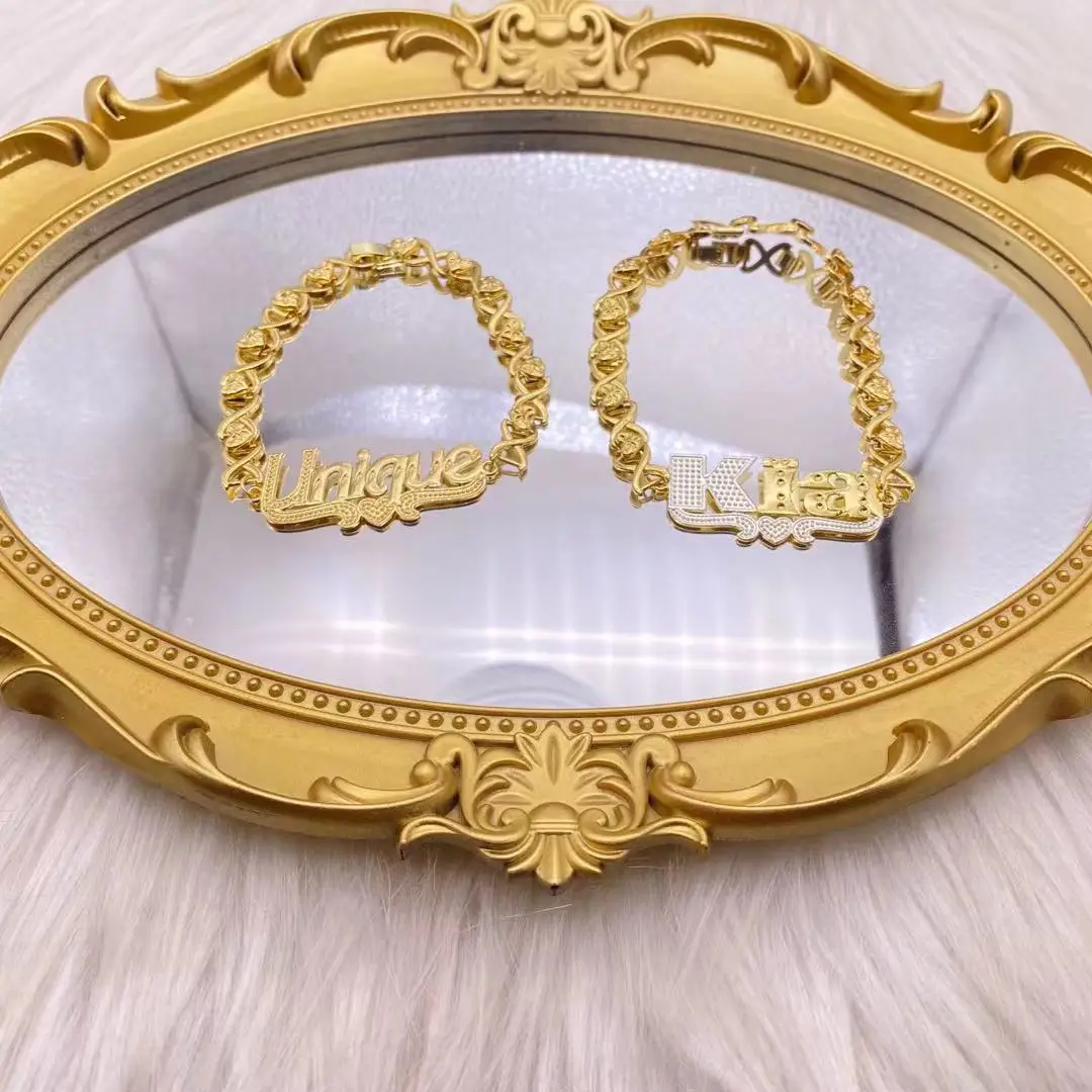 Персонализированный именной браслет XOXO, позолоченный именной браслет из нержавеющей стали