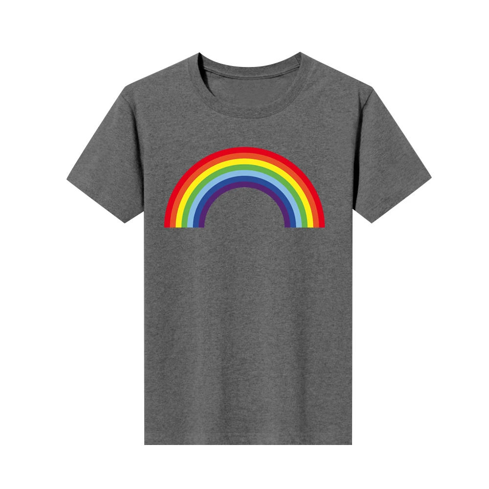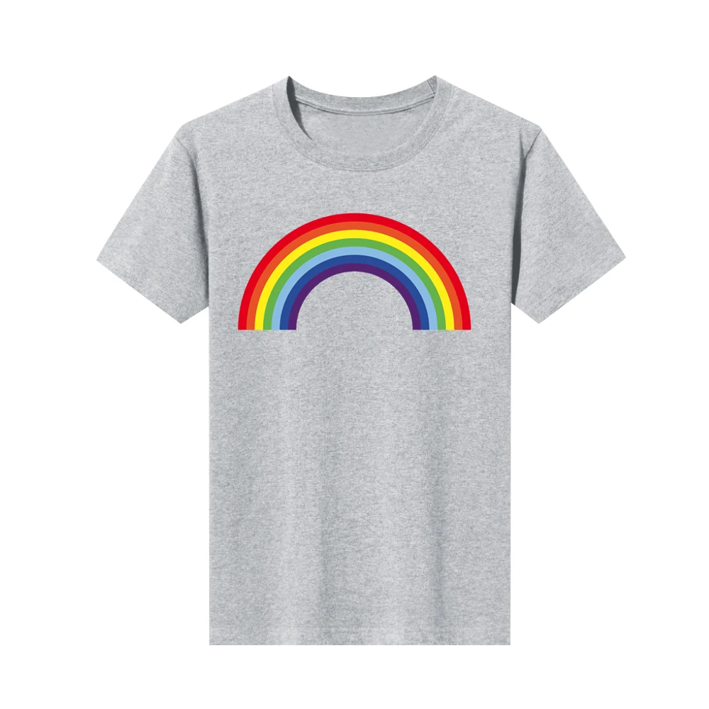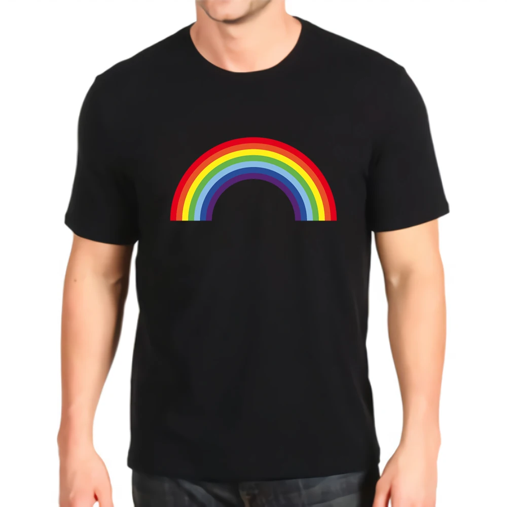 Футболка мужская с круглым вырезом, хлопковая рубашка с принтом радуги, с коротким рукавом, 7 цветов, на заказ