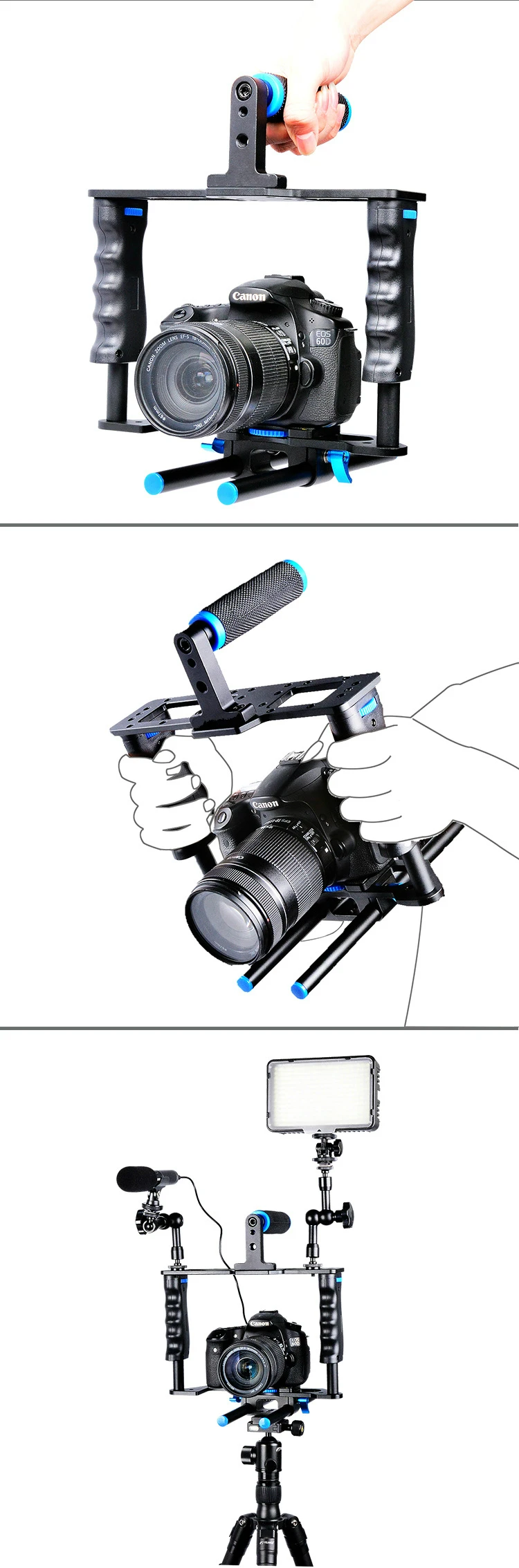 Портативная DSLR клетка; Этот продукт получен от профессиональных фотографов, камера основана на оригинальном устройстве для подключения большего количества внешних аксессуаров, включая СВЕТОДИОДНЫЙ монитор, микрофон, вспышку, также можно добавить базовую пластину в соответствии с фокусом, матовой коробкой. Ручной или используется на штативе. С легкой клеткой dslr, чтобы сделать вас более профессиональными.
