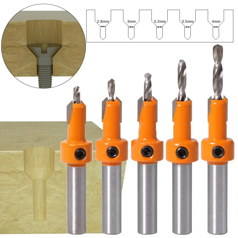 5 шт.компл. сверла с зенкером, зенкер для деревообработки, конусное...