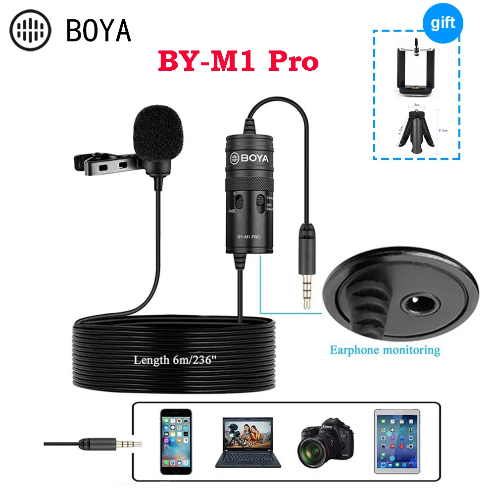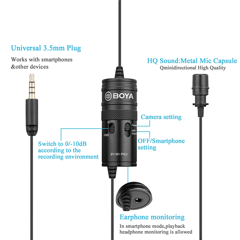 Петличный микрофон BOYA BY-M1 Pro, 10 дБ, 6 м, 3,5 мм, микрофон для iPhone, HUAWEI, смартфона, ПК, камеры, аудио, запись DSLR