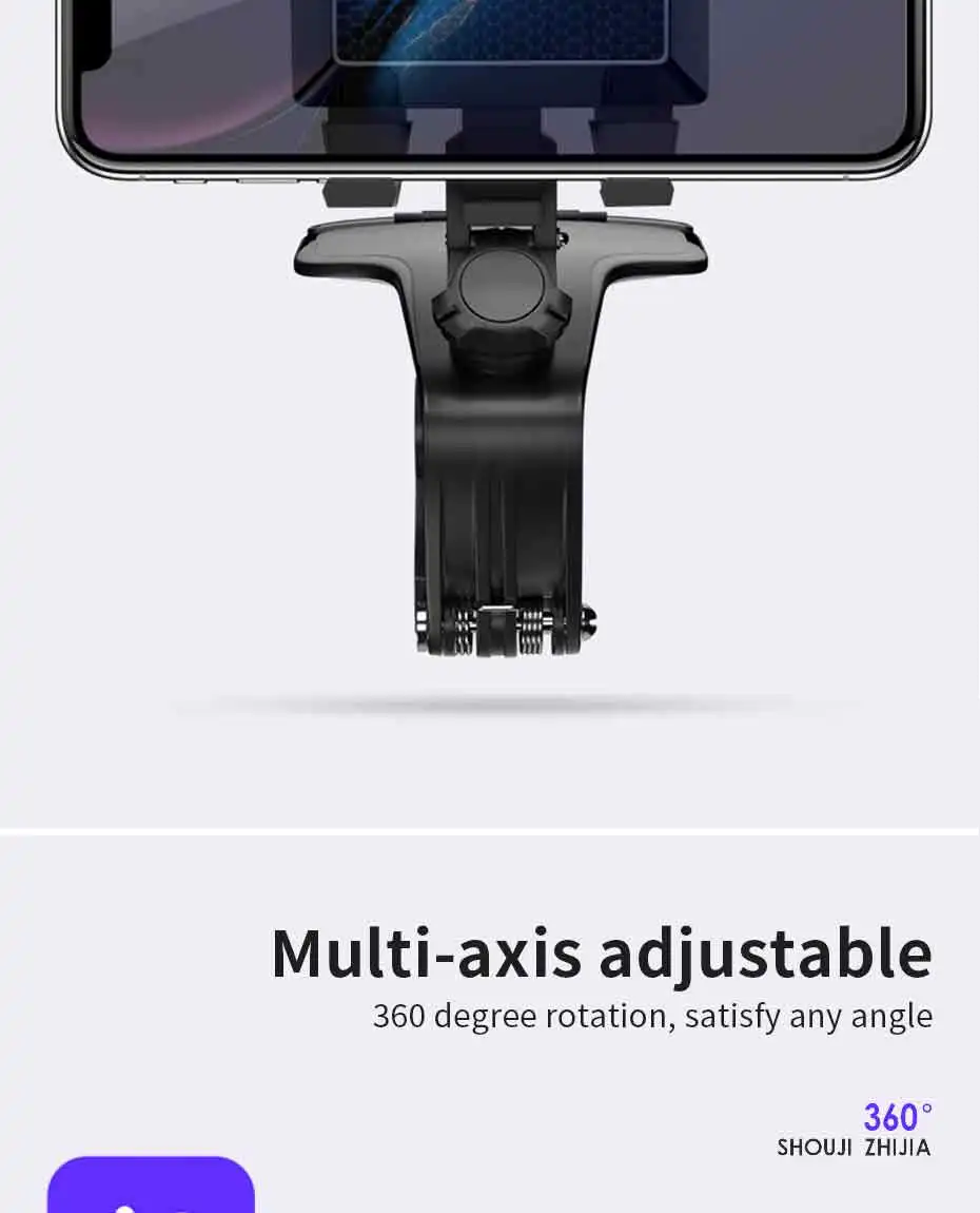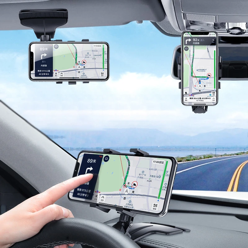 Характеристики:Название: Автомобильный держатель для телефонаМатериал: АБСПодходит: телефон 3-7 дюймовМесто установки: автомобильное зеркало заднего вида, приборная панель, солнцезащитный козырекЦвета: черный