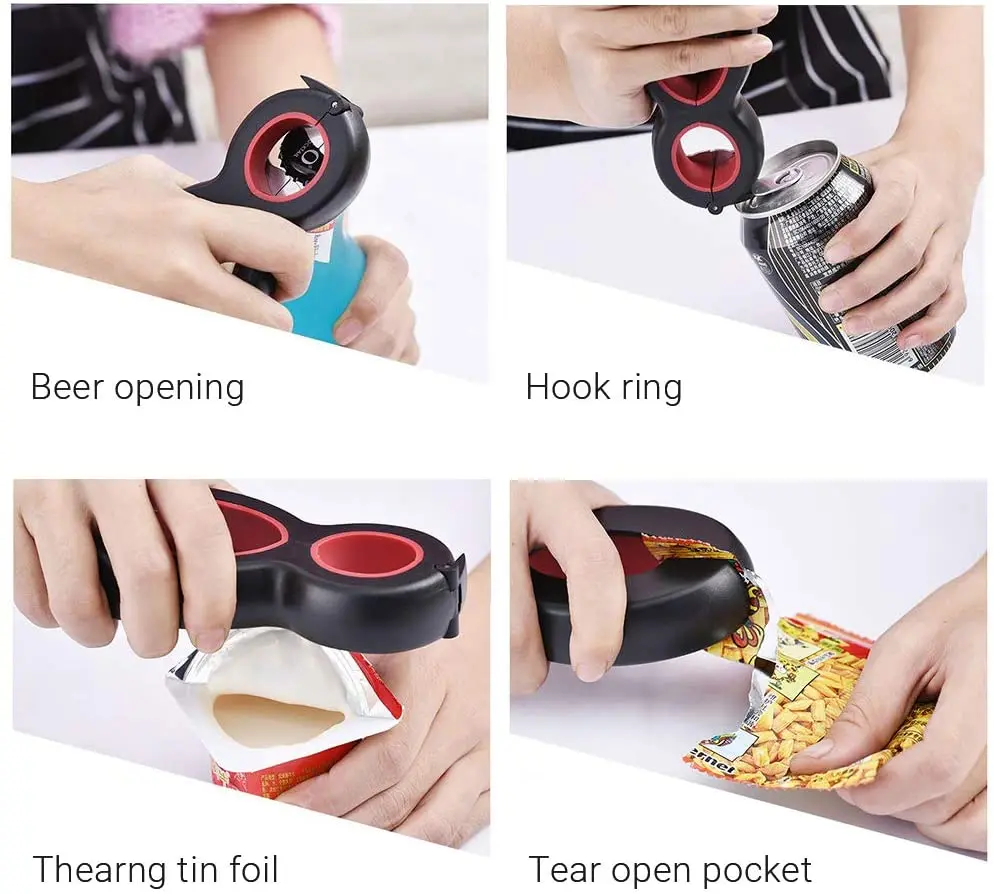 6 в 1 открывалка для банок, пивных бутылок, закручивающаяся Крышка для банок, винных открывалка в форме когтя, Многофункциональные кухонные инструменты, гаджеты