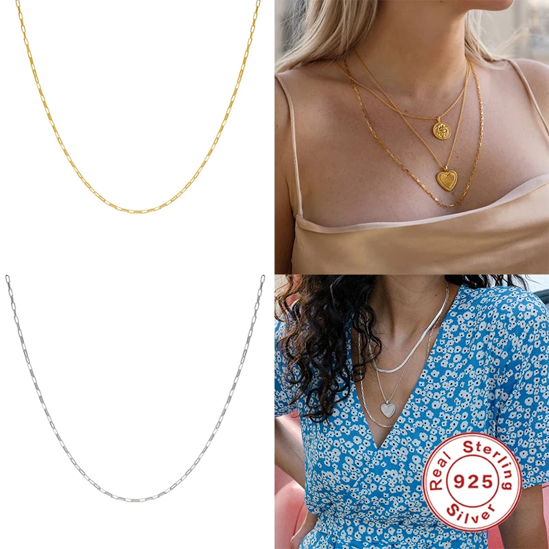 Женское Ожерелье-чокер из стерлингового серебра 925 пробы, Золотое тонкое ожерелье в форме скрепки, роскошное Европейское ювелирное изделие