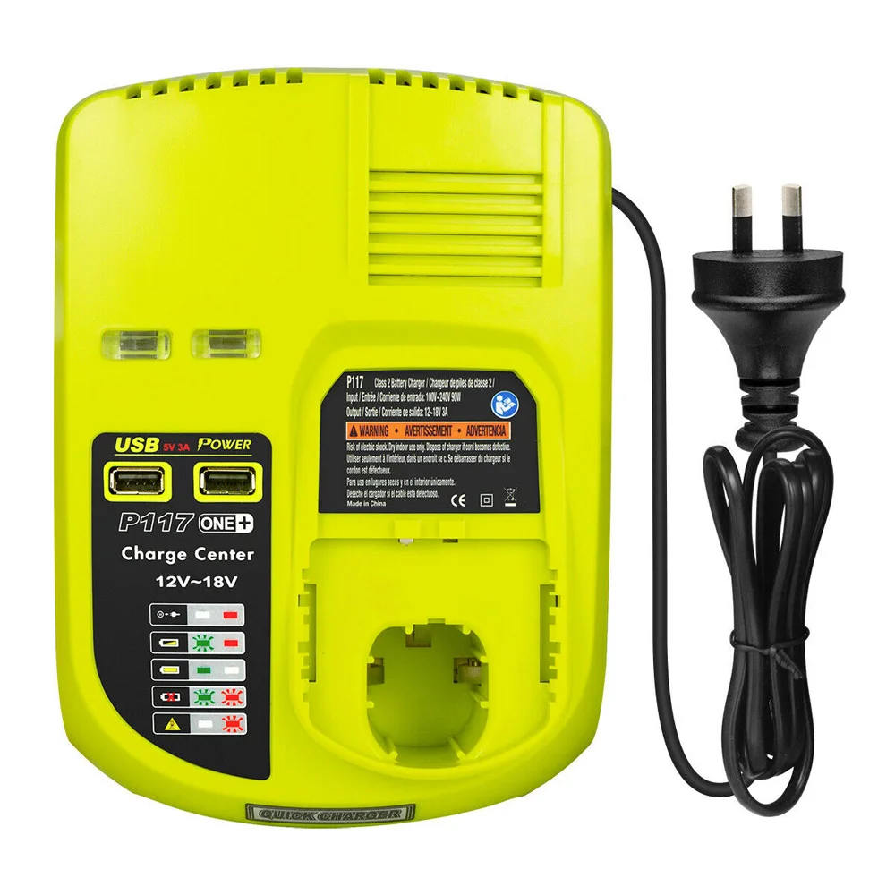 Зарядное устройство Ryobi P117 для литиевых аккумуляторов, 2 USB-порта, зарядное устройство Ryobi ONE + Plus, штепсельная вилка СШАВеликобританииЕСАвстралии, 12-18 в, быстрая зарядка