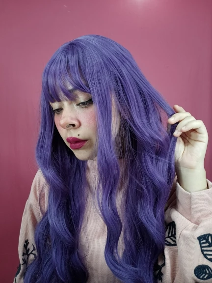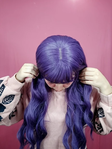 Парики для косплея, длинные, фиолетовые, смешанные, с челкой