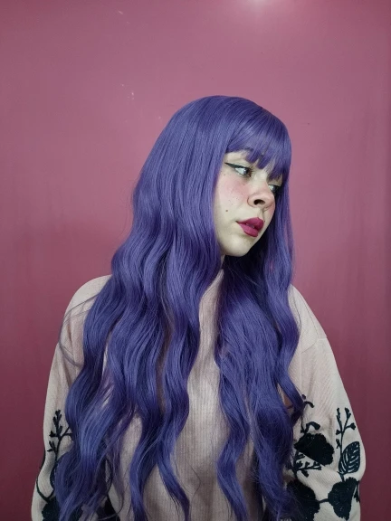 Длинные волнистые волосы фиолетового цвета с эффектом омбре средней...