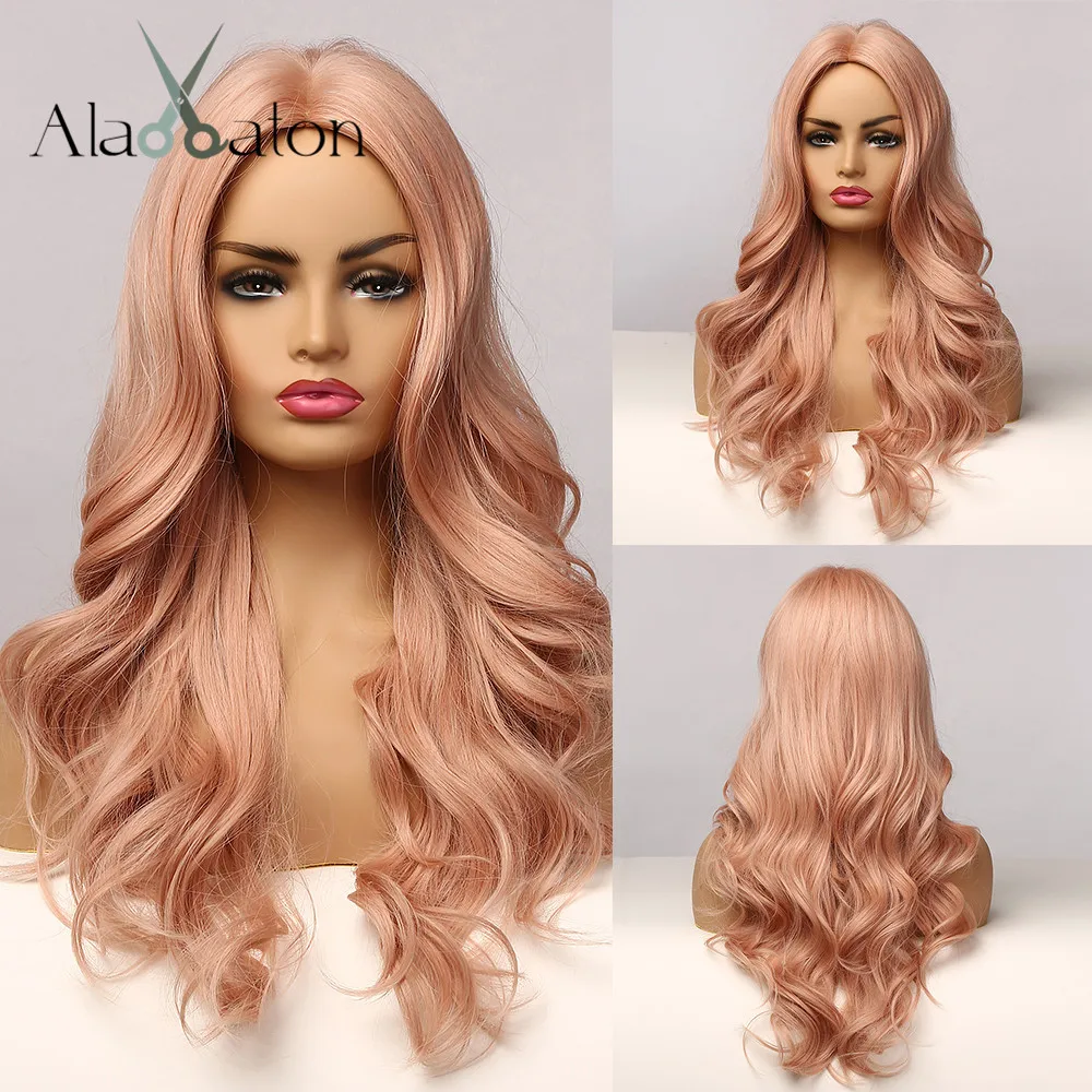 ALAN EATON синтетический парик для женщин афро средняя часть длинный волнистый термостойкий светильник розовый косплей Лолита Повседневный парик поддельные волосы