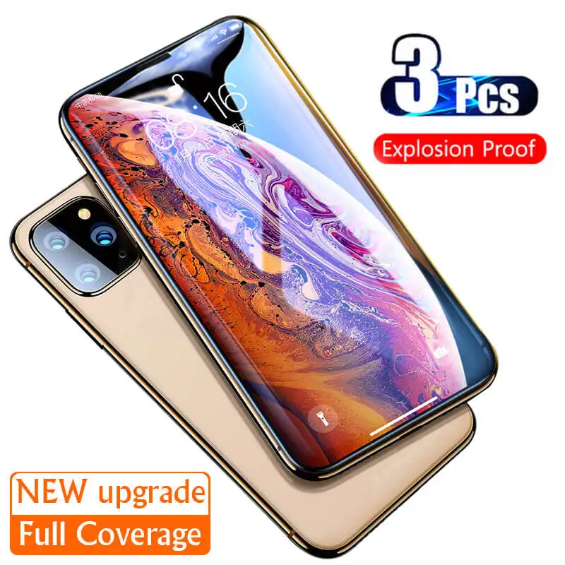 3 шт. полное покрытие для iphone 11 Pro Max, защитные стекла для эк...