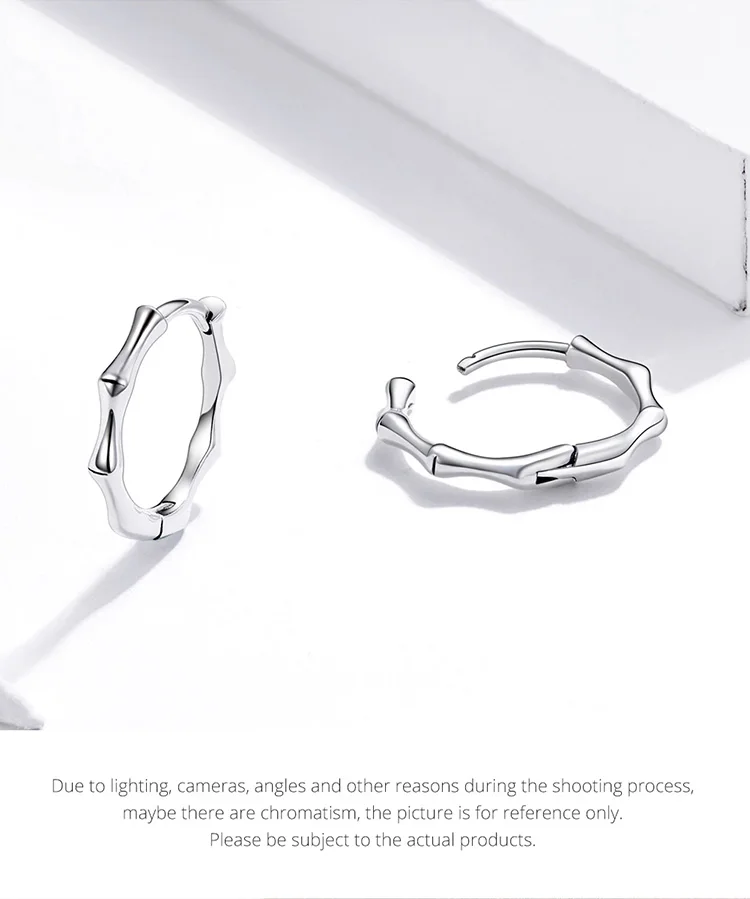 Диаметр: 1,3 см Оксидированное Серебро S925 + Простая форма включает в себя красивые элементы бамбука, добавляя акцентов в вашу повседневную носку.