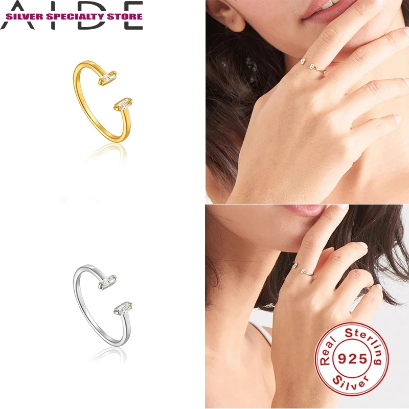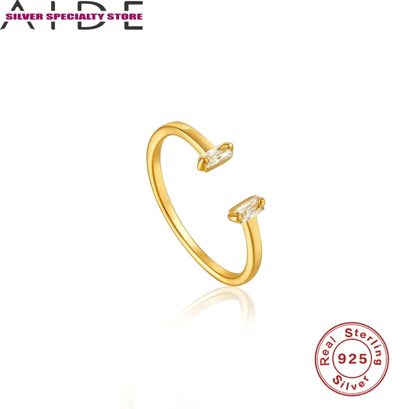 AIDE Открытое кольцо, 100% Стерлинговое Серебро 925 пробы, позолоченные кольца для женщин, ювелирные украшения, бриллианты, свадебные кольца, Bague Bijoux, подарки