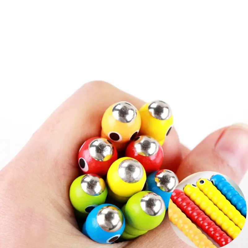 Деревянные игрушки Детская игрушка для хватания, 1 жезл + 5 червей для ловли клубники