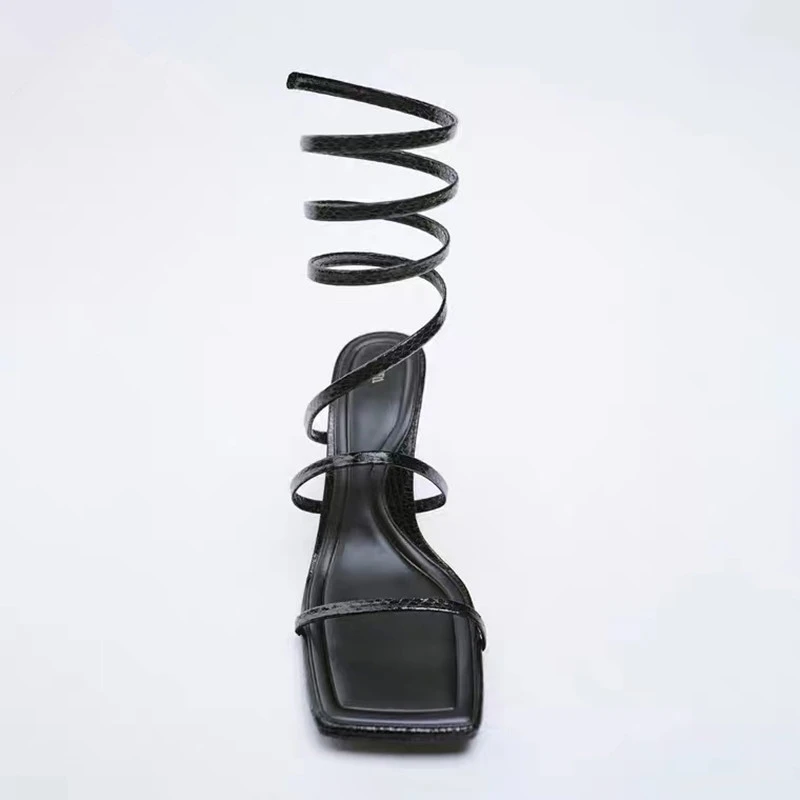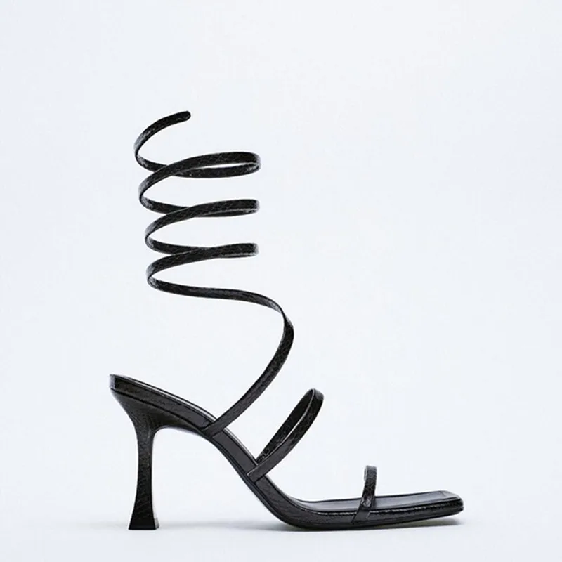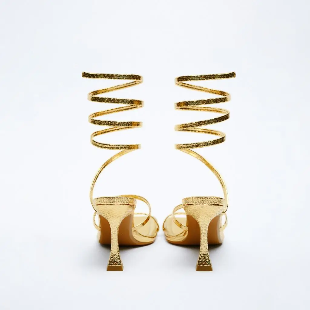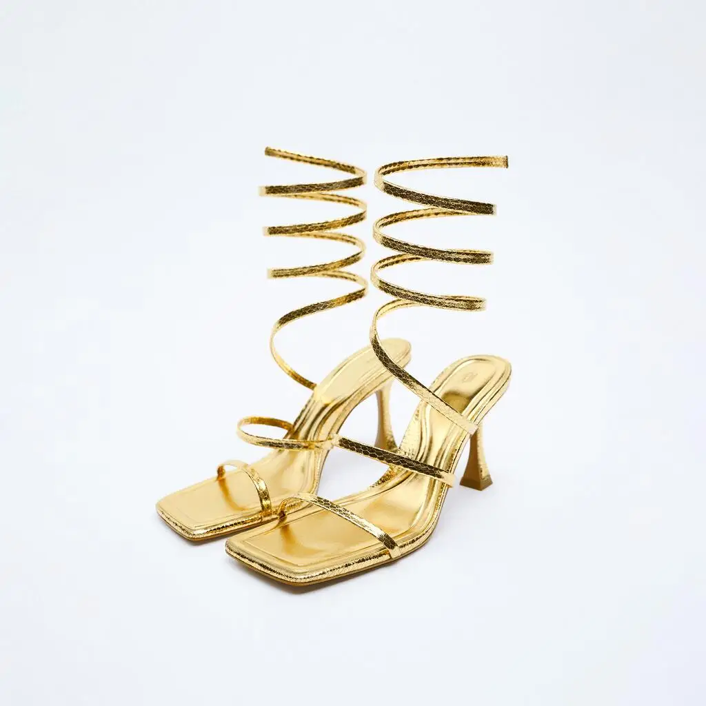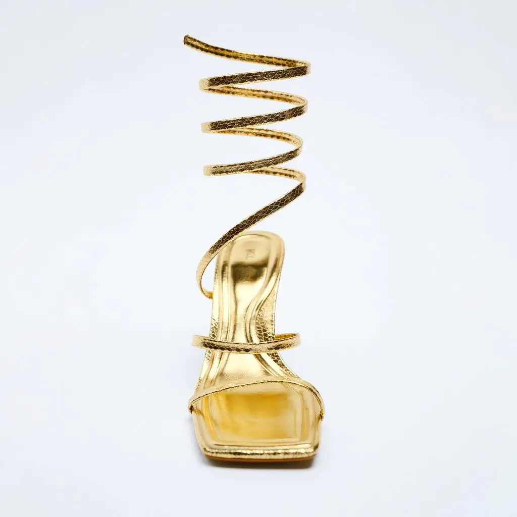 Женские туфли на высоком каблуке WSL TRAF ZA, золотые модные босоножки на спиральном каблуке, черные повседневные туфли на шпильке с квадратным носком, 2022