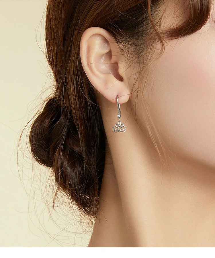 Материал: S925 + окисленное серебро + паве установка CZ Размер: 2,4*1 см Описание: Чистые линии обрисовывают форму лотоса, а циркониевое украшение делает ваши уши более сияющими.