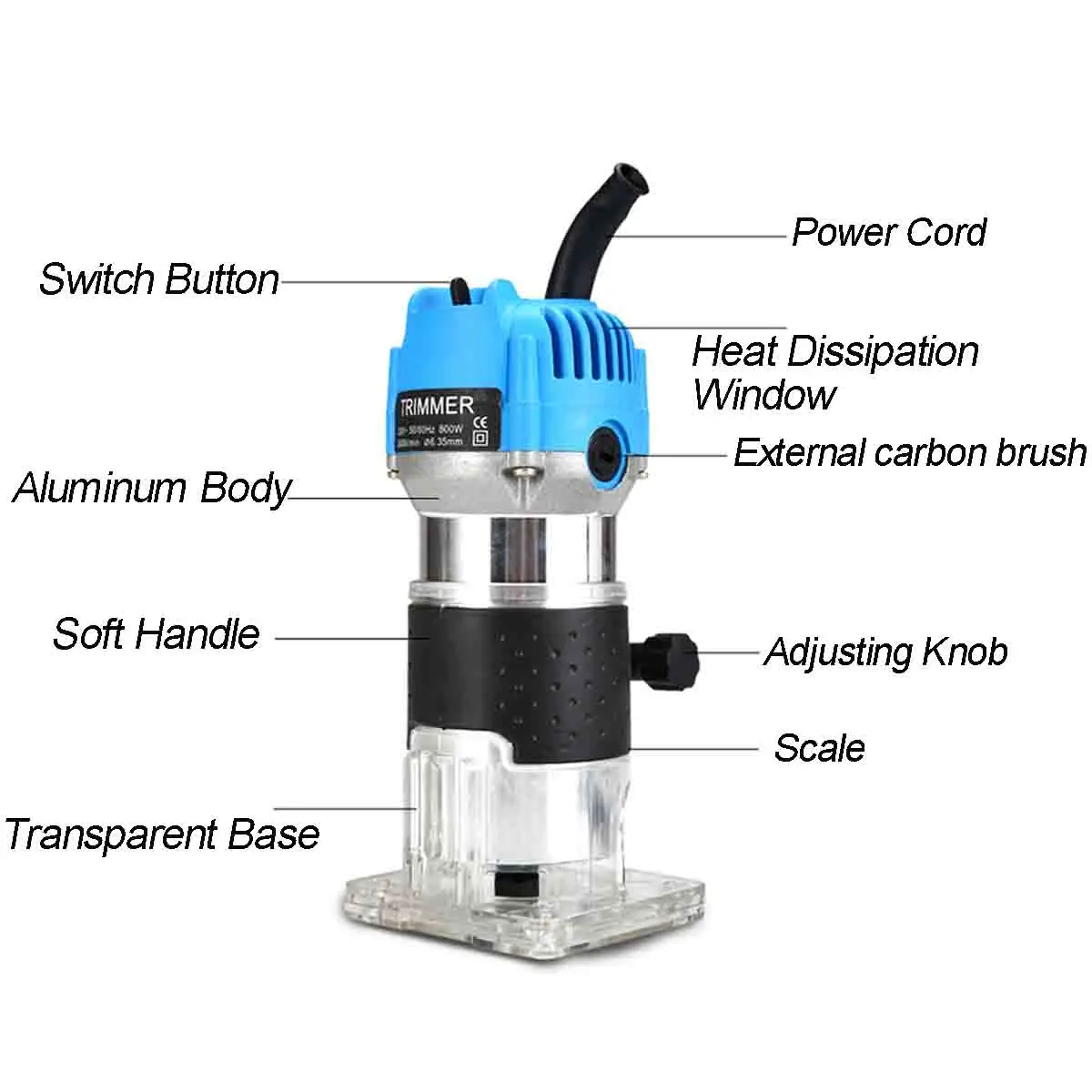 Особенности:-Медный двигатель, сильная мощность, низкое тепло-Алюминиевый чехол для корпуса, прочный, водонепроницаемый и пылезащитный-Покрытый резиной ручкой, удобно держать и легко управлять-Прозрачное основание, четкое управление, точное управление-Стальной патрон, более плотный зажим и легкая замена-Одно касание тумблер для легкого открытия и закрытия-Внешняя углеродная щетка, легко заменить