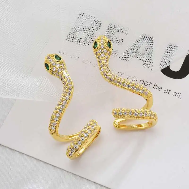 Женские блестящие серьги-гвоздики, циркониевые серьги-каффы в форме змеи, эффектные, 2021, 107