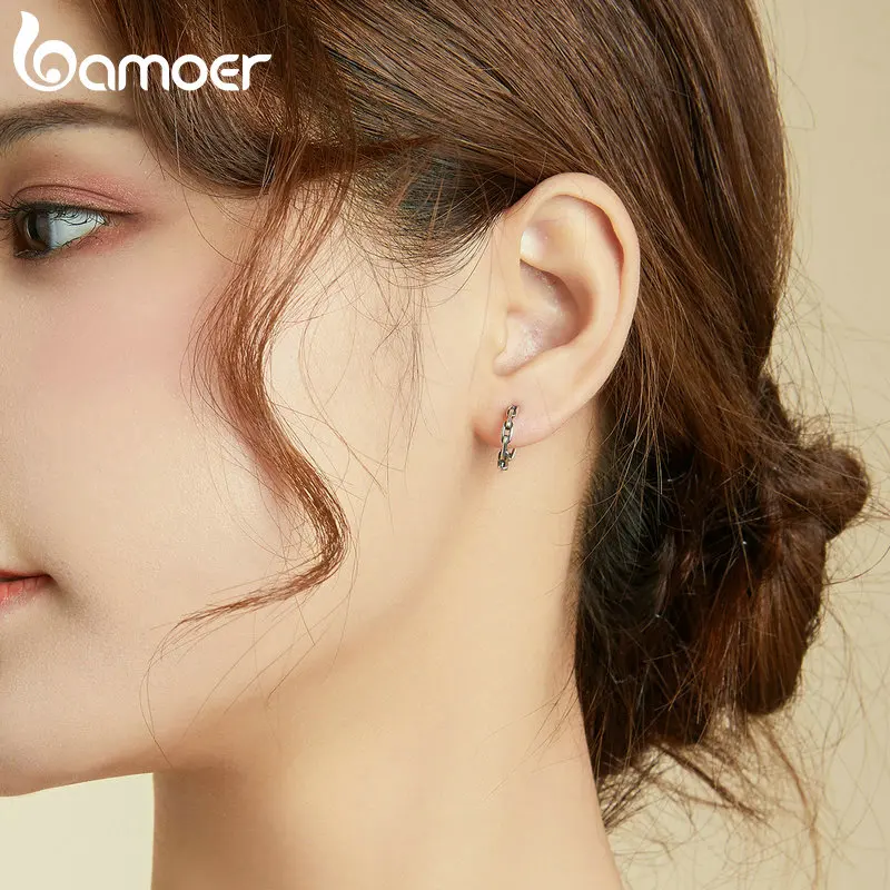 Серьги bamoer Huggie, покрытые платиной, 925 пробы, серебряные серь...