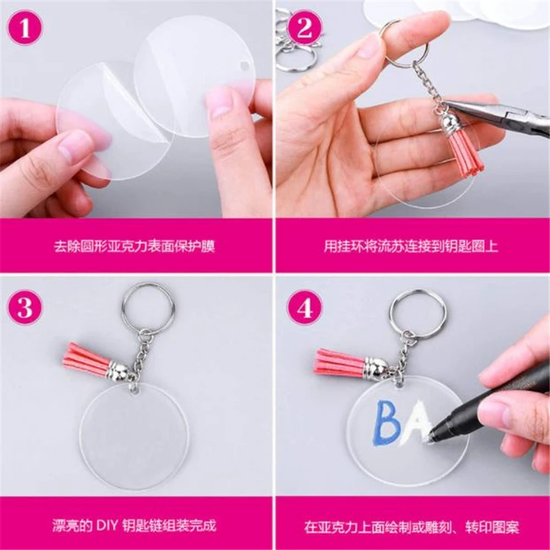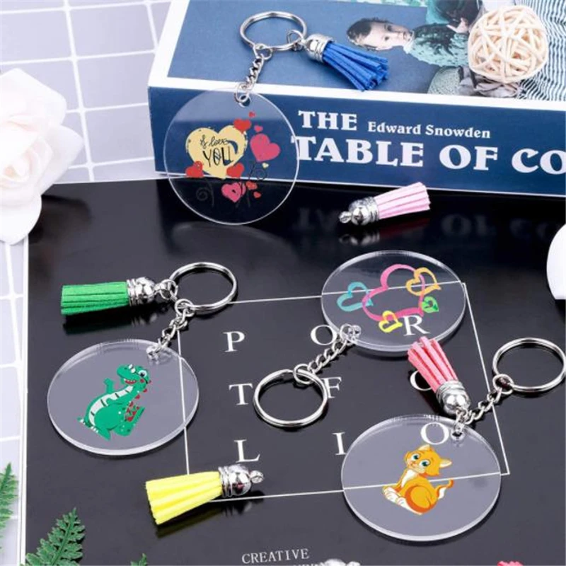Акриловые заготовки для брелоков с кольцами для ключей круглые прозрачные диски круглые цветные кольца с подвеской-кисточкой 4890 шт.