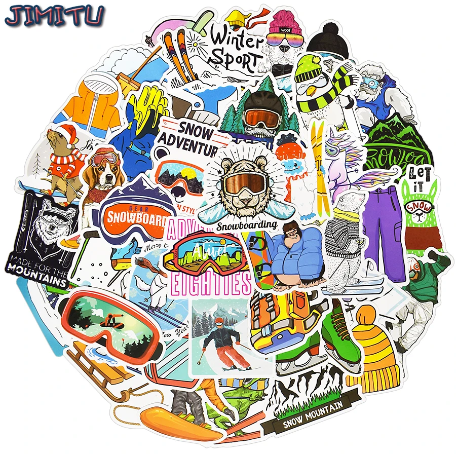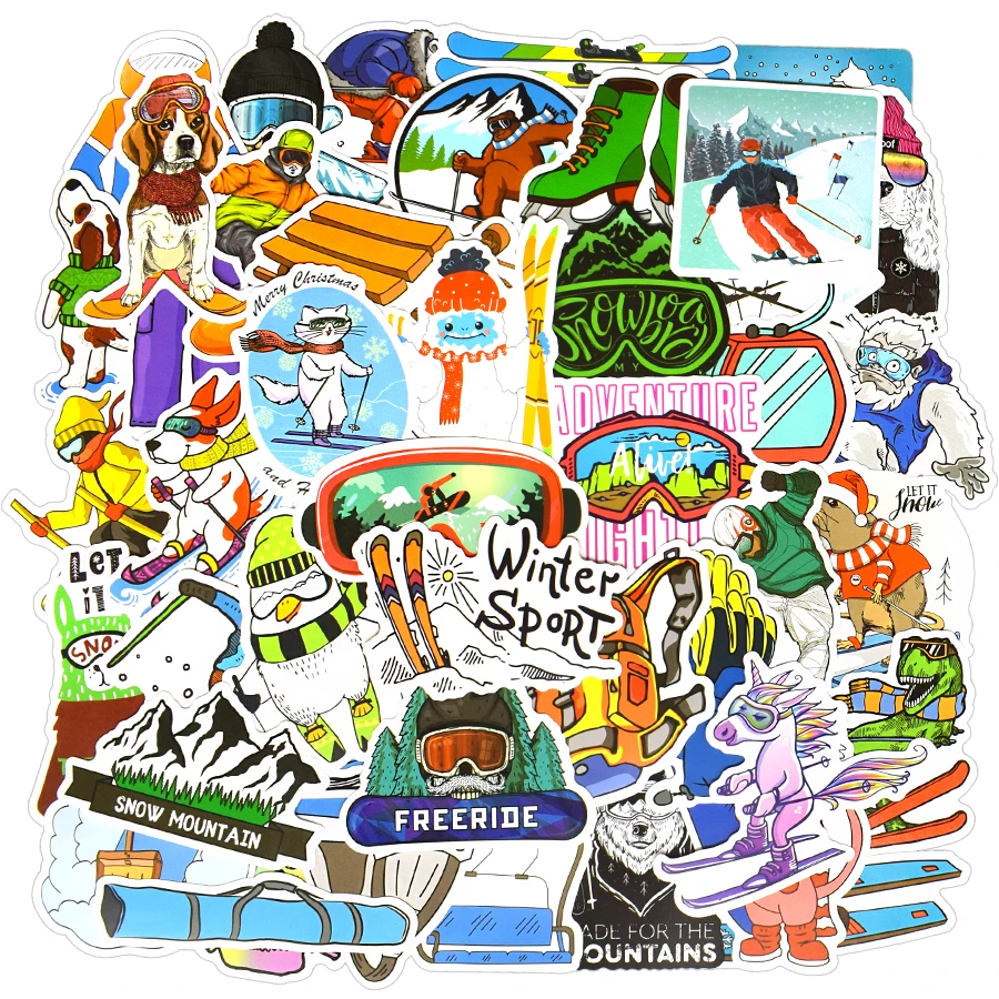 Набор наклеек для катания на лыжах, 50 шт., зимние водостойкие наклейки с граффити, виниловые наклейки сделай сам для сноуборда, шлема, ноутбука, лыж