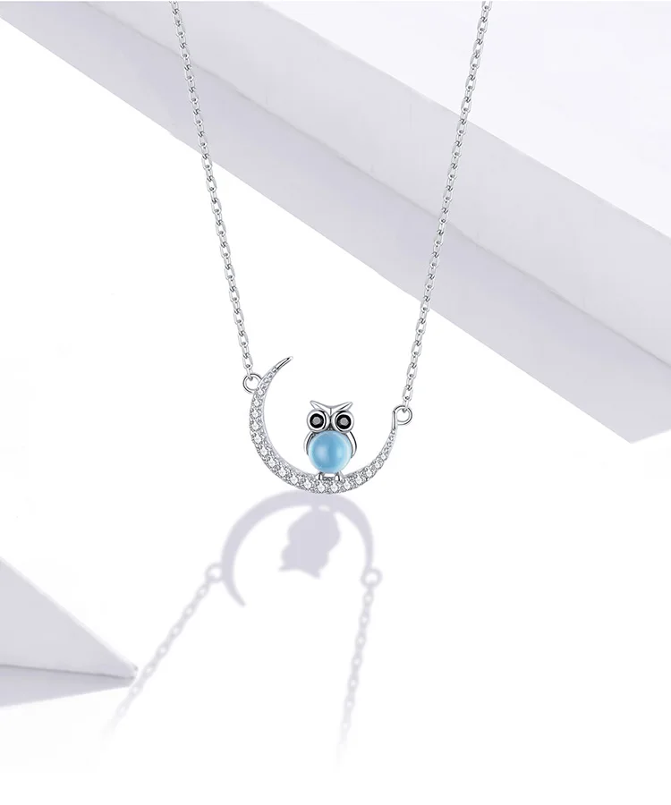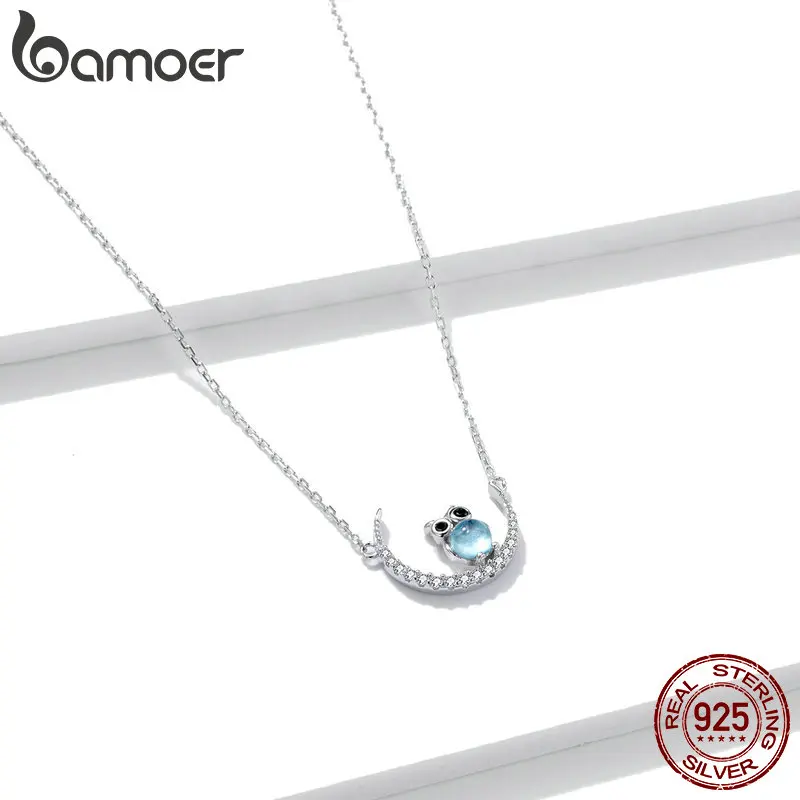 Женское платиновая подвеска bamoer, ожерелье из стерлингового серебра 925 пробы с Луной и совой, вечерние ювелирные изделия в подарок BSN209